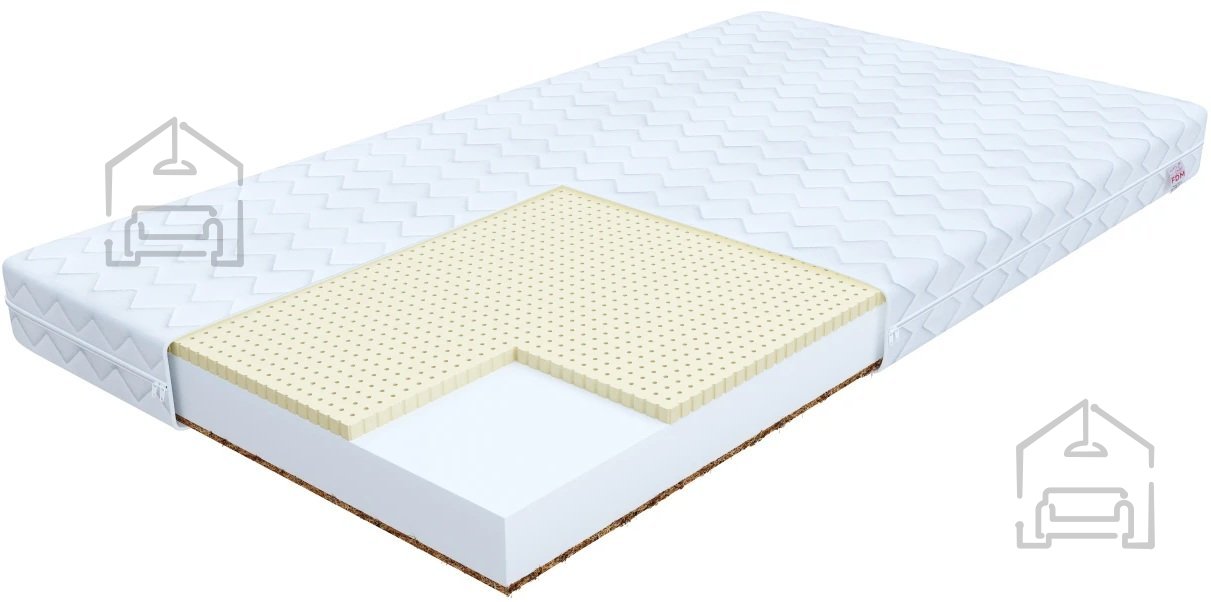 Material: waschbarer Bezug, Kokosfasern 1 cm, perforierter Latex 2 cm, Klimafasern, Polyurethanschaum T25 6 cm