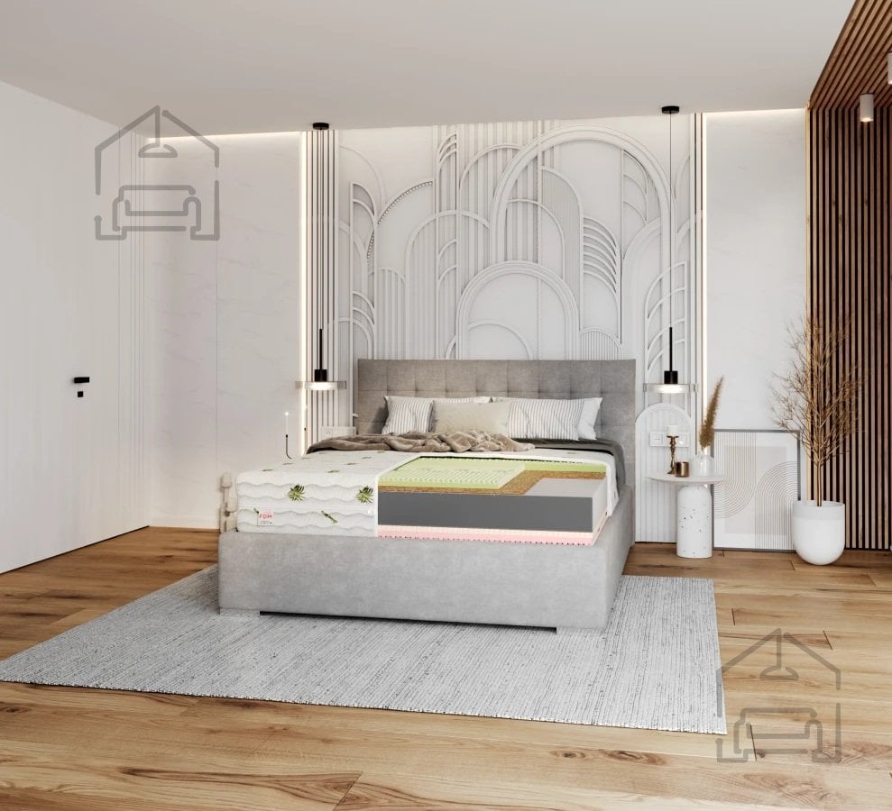Die andere Seite hat eine Latexschicht und profilierten thermoplastischen Schaum VISCO mit Formgedächtnisfunktion. Das bedeutet, dass er sich unter dem Einfluss von Gewicht und Körperwärme vollständig an die Form der Silhouette des Benutzers anpasst. Dies zeigt sich in außergewöhnlichem Schlafkomfort. Latex ist ein komfortables, hygienisches und äußerst langlebiges Material.