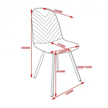 • Das Stuhlgestell besteht aus Metallrohren mit Durchmessern von 1,5 cm bis 2,5 cm und einer Stärke von 0,12 cm.