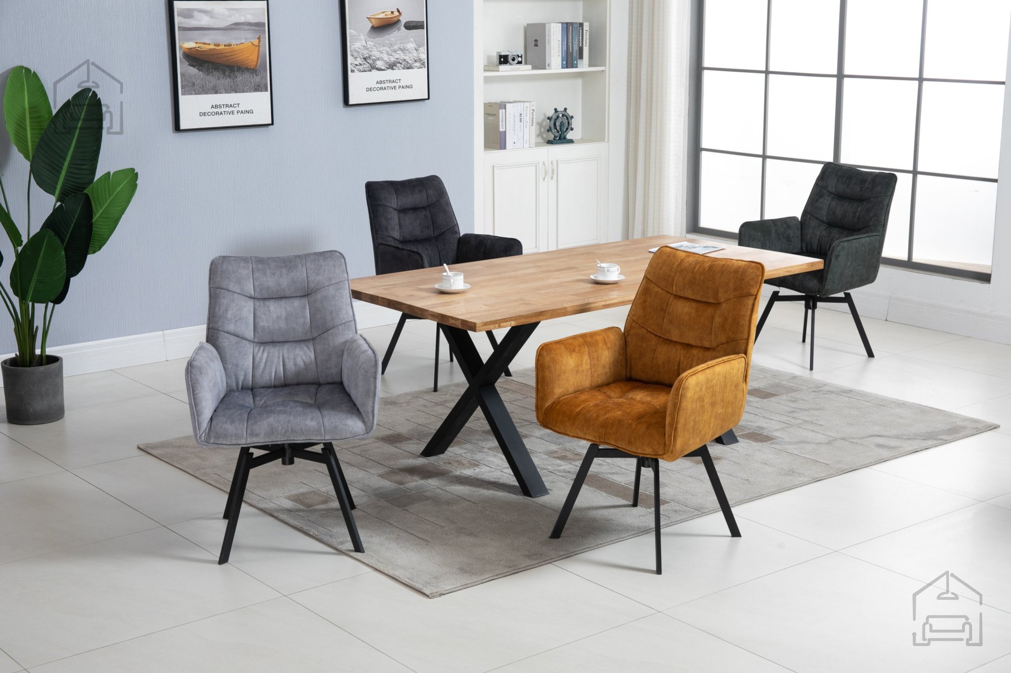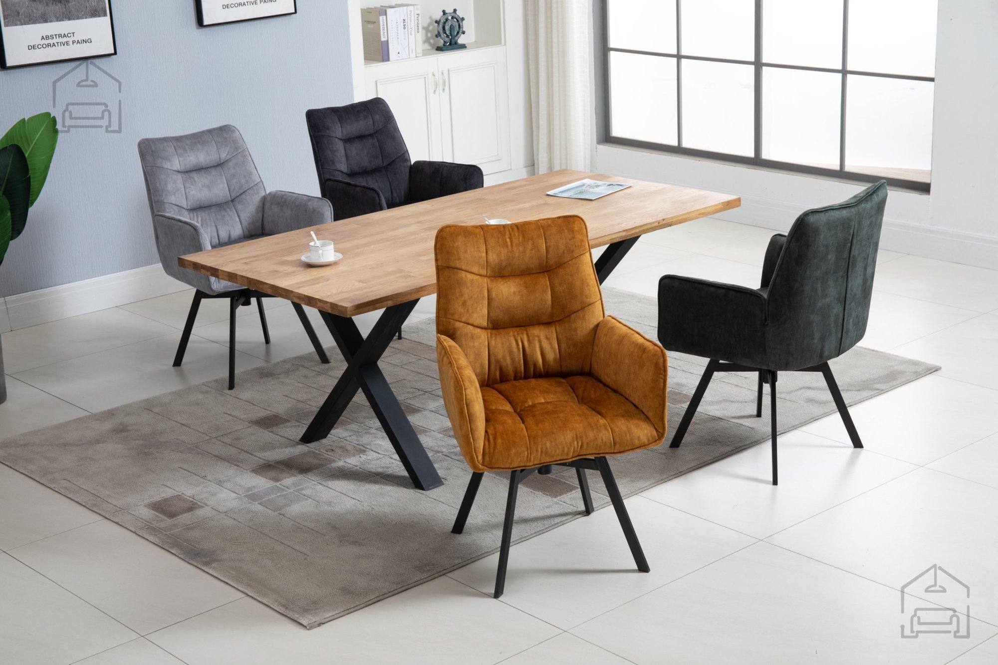 • Bequemer Esszimmerstuhl mit gepolsterten Armlehnen, erhältlich in mehreren Farben.