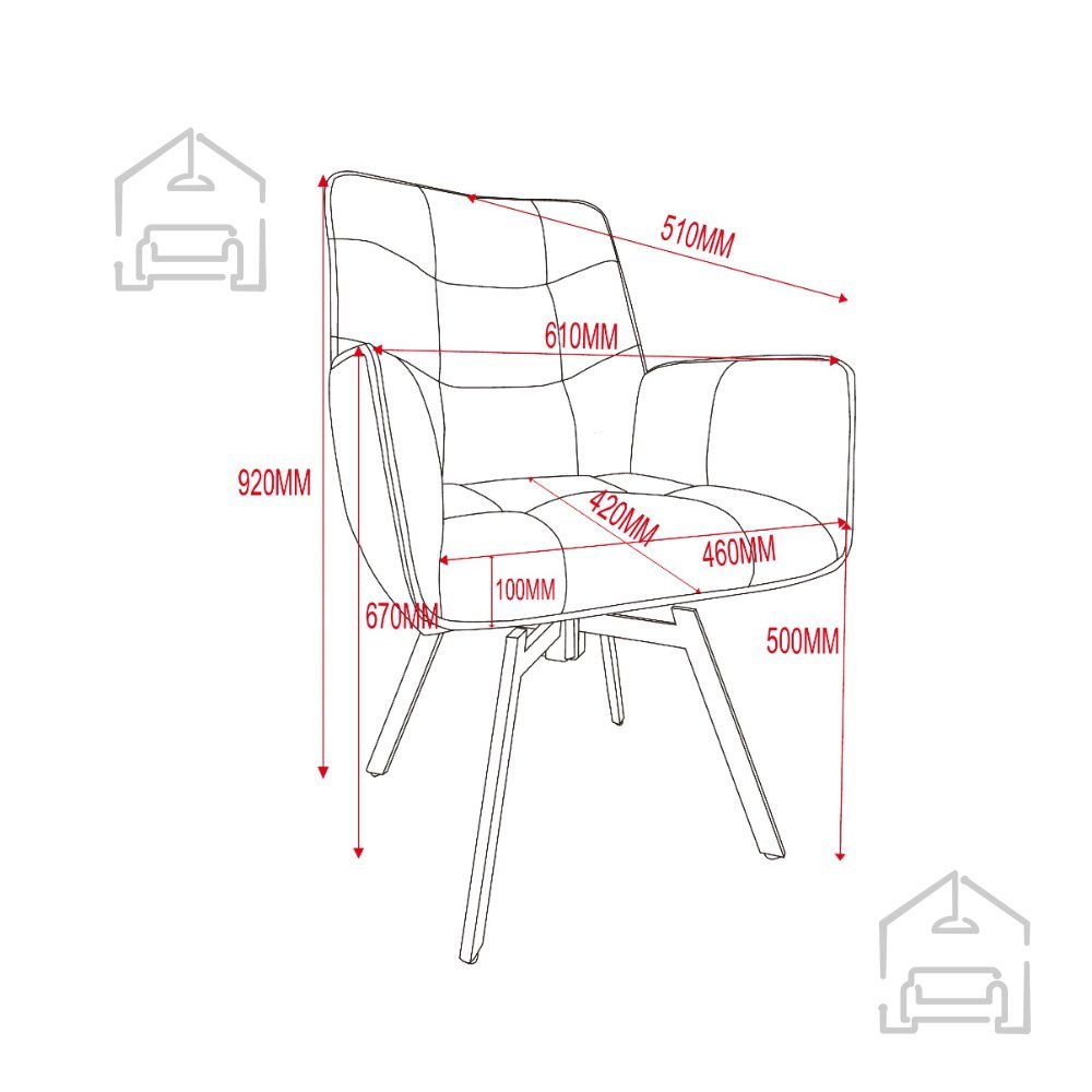 • Die Armlehnen haben eine Höhe von 67 cm.