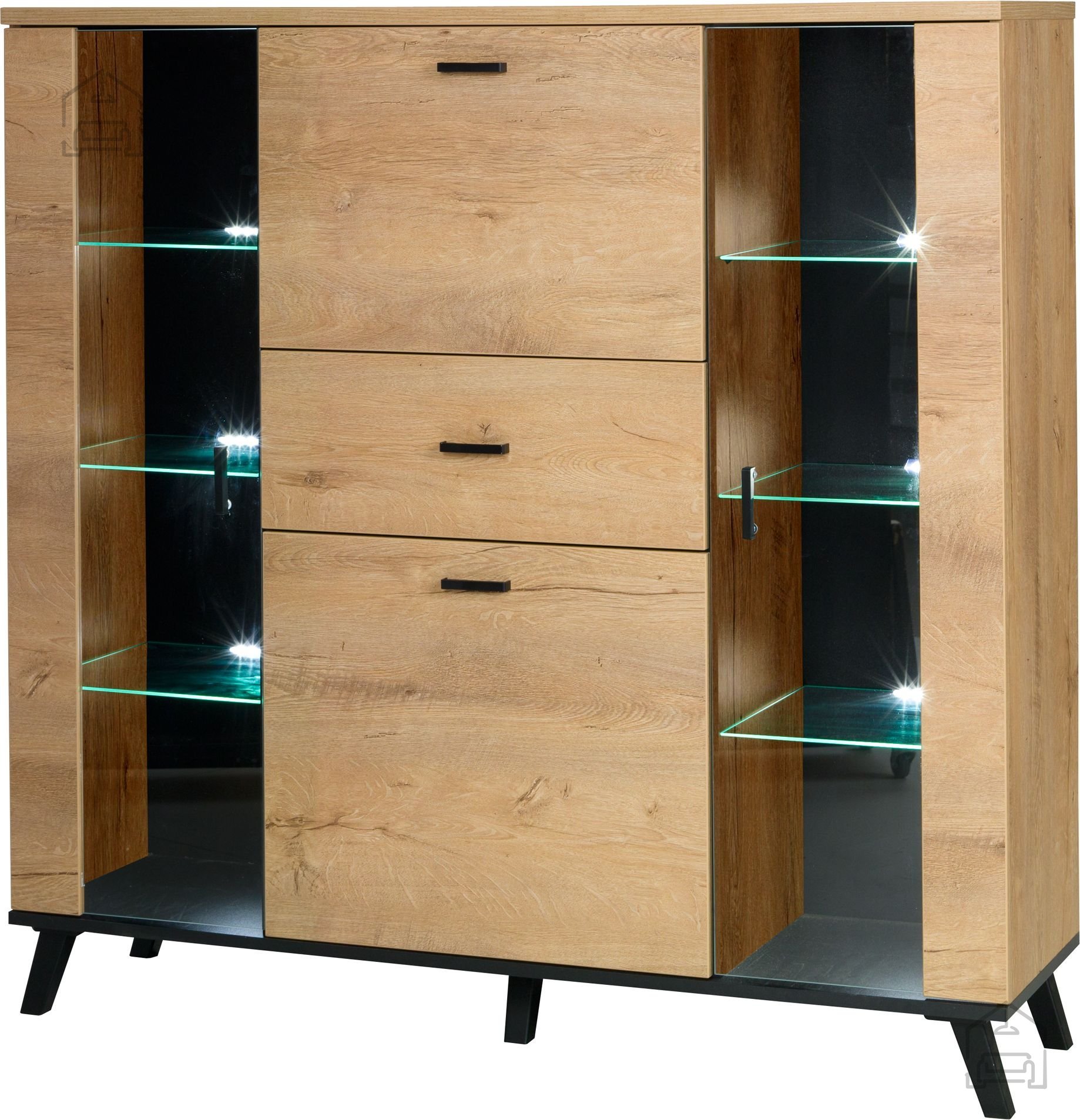 Die Kommode John ist eine ausgezeichnete Wahl für alle, die hochwertige Verarbeitung, Funktionalität und ästhetische Vollendung schätzen. Mit ihrer natürlichen Eichenfarbe und der Möglichkeit zusätzlicher Beleuchtung bringt sie Wärme und Eleganz in das Zuhause. Dank des durchdachten Designs und der langlebigen Materialien wird dieses Möbelstück sein Aussehen und seinen Nutzwert lange behalten, unabhängig von Veränderungen der Einrichtungstrends.