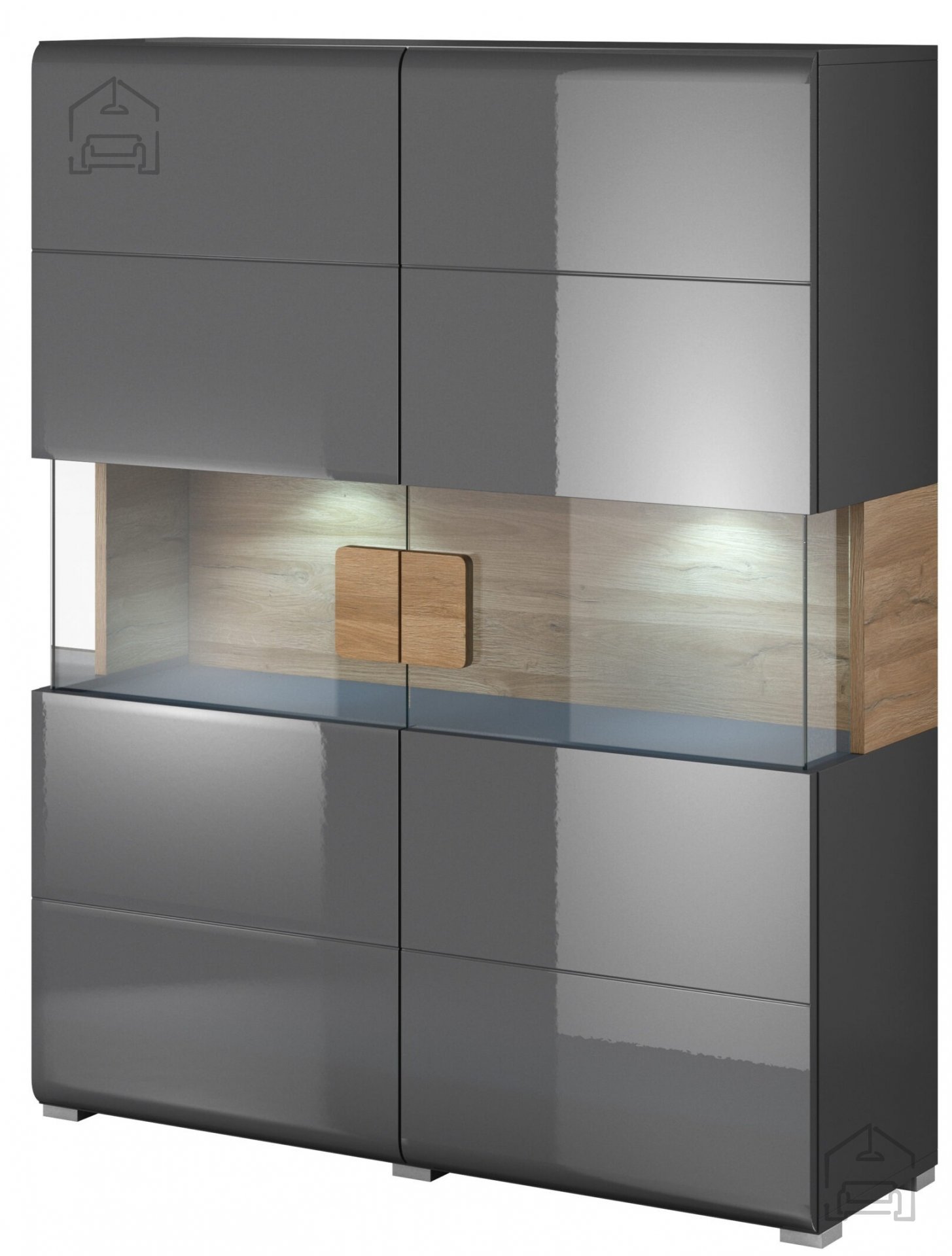 Die Vitrine Toledo ist die perfekte Wahl für alle, die Funktionalität und Ästhetik in einem Möbelstück vereinen möchten. Dank ihrer Geräumigkeit bietet sie ausreichend Platz zur Aufbewahrung all Ihrer Wertgegenstände und ermöglicht es gleichzeitig, durch die Glastüren Ihre liebsten Dekorationsstücke stilvoll zu präsentieren. Die anthrazitfarbene Korpusfarbe in Kombination mit Grandson Eiche verleiht dem Ganzen einen modernen Touch, der sich problemlos mit den übrigen Möbeln in Ihrem Zuhause verbinden lässt.