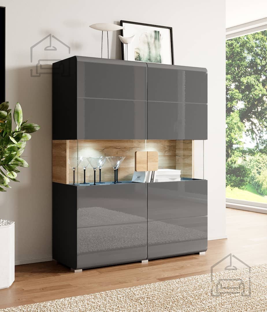 Für diejenigen, die den Raum aufwerten und erhellen möchten, gibt es auch die Option einer LED-Beleuchtung. Diese Funktion hebt nicht nur das Innere der Vitrine hervor, sondern sorgt auch für eine warme und angenehme Stimmung in Ihrem Wohnzimmer, was besonders in den Abendstunden von Bedeutung ist.