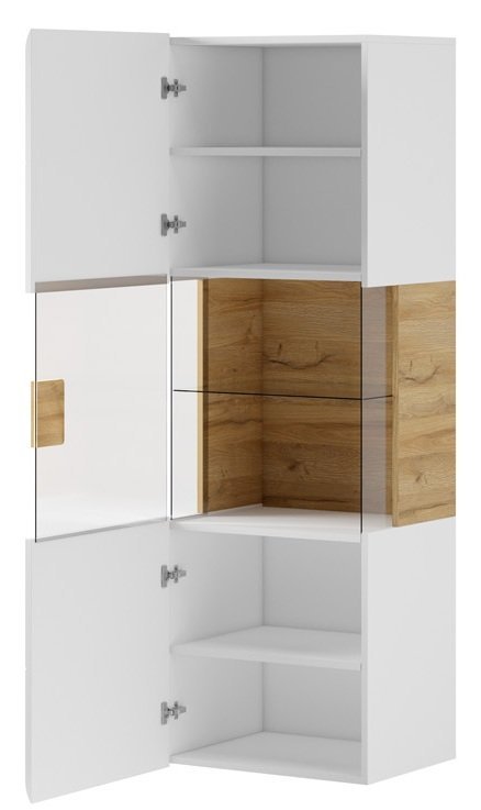 Die Vitrine Toledo 2 ist ein wahres Schmuckstück moderner Möbel, das Ästhetik, Funktionalität und Erschwinglichkeit vereint. Hergestellt aus hochwertigen MDF-Platten, bietet diese Vitrine die perfekte Kombination aus modernem Design und Praktikabilität, die Ihr Wohnzimmer auf ein neues Level der Eleganz hebt. Wenn Sie ein Möbelstück suchen, das Ihrem Zuhause einen Hauch von Raffinesse verleiht, ist die Toledo 2 Ihre beste Wahl.