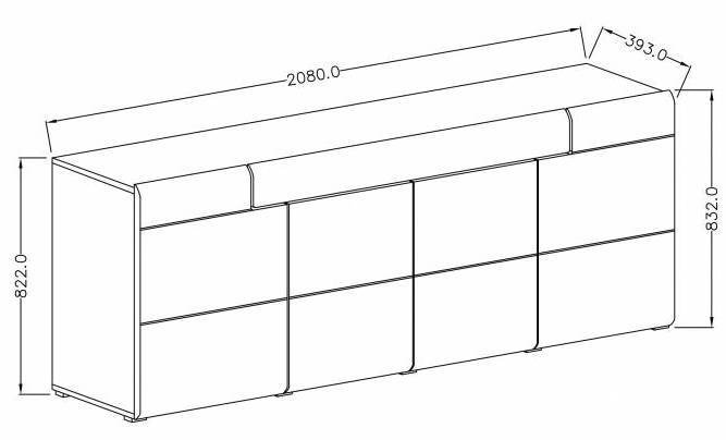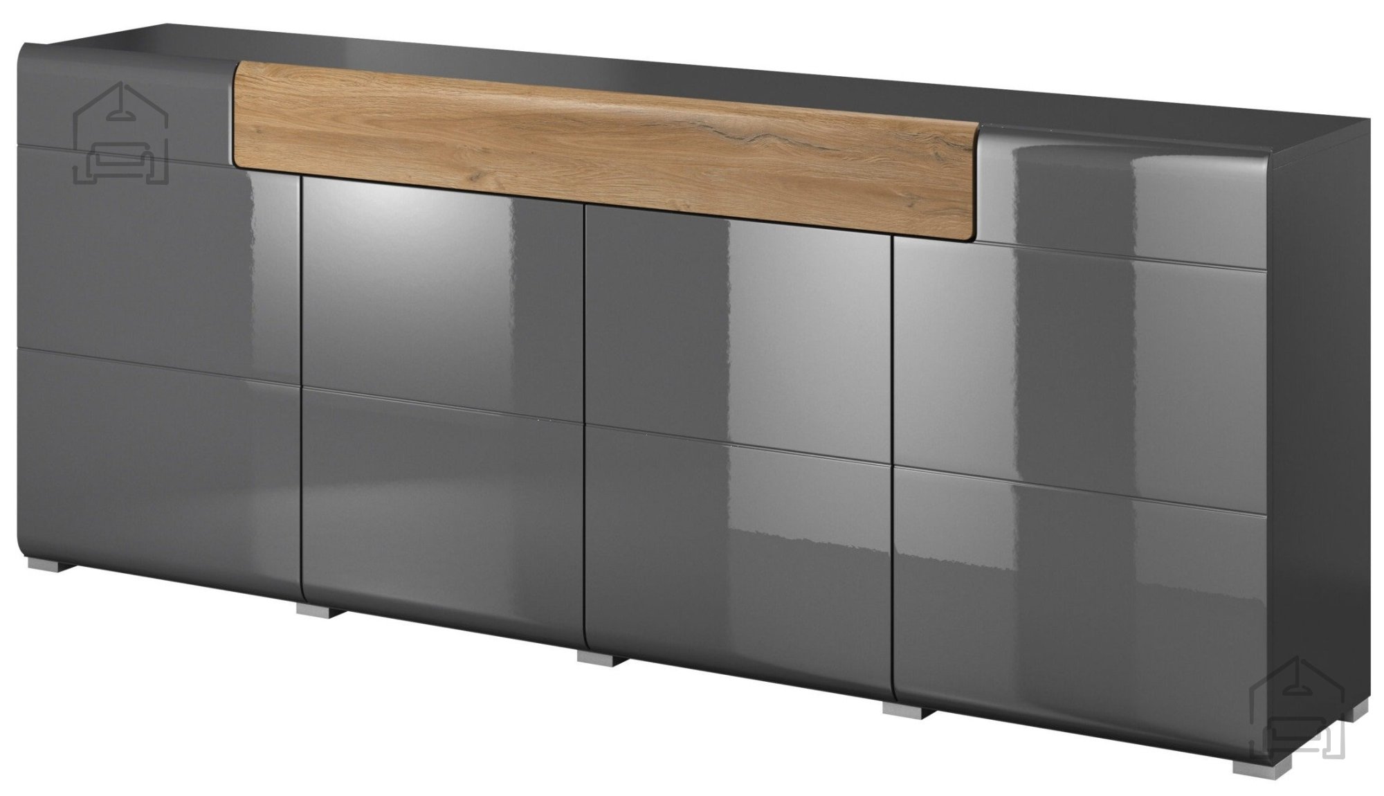Die Kommode Toledo 3 hat beeindruckende Maße von 208x39x82 cm, was ausreichend Platz für die Aufbewahrung und Präsentation Ihrer Lieblingsstücke bietet. Sie ist aus hochwertigem MDF-Material gefertigt, das Langlebigkeit und eine lange Lebensdauer des Möbels garantiert. Die Korpusfarbe in elegantem Anthrazit und die Front in warmer Grandson Eiche schaffen eine harmonische Kombination, die sich mühelos in jeden Raum einfügt.