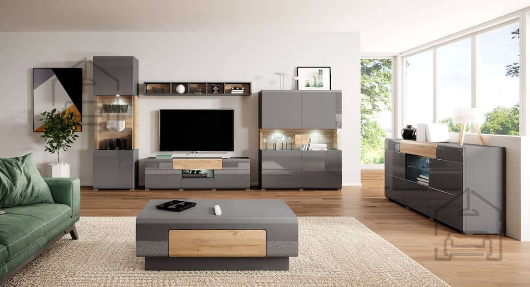 1. Ästhetisches Design: Die Kombination aus anthrazitfarbenem Korpus und Fronten in Grandson Eiche schafft einen eleganten und modernen Look, der sich mühelos in verschiedene Einrichtungsstile einfügt. 2. Geräumigkeit und Organisation: Mit ihren beeindruckenden Maßen von 147x39x131 cm bietet die Kommode Toledo ausreichend Stauraum für verschiedenste Gegenstände, von Kleidung bis hin zu dekorativen Elementen. Ihre großzügigen Schubladen und Regale ermöglichen eine einfache Organisation. 3. Erstklassige Qualität: Hergestellt in der renommierten Fabrik Helvetia Meble in Polen, überzeugt diese Kommode nicht nur durch ihre ästhetische Anziehungskraft, sondern auch durch Robustheit und Qualität, die Sie von einem europäischen Hersteller erwarten. 4. Flexibilität: Die Option zur Ergänzung mit LED-Beleuchtung ermöglicht eine individuelle Anpassung an Ihre Wünsche und Bedürfnisse, sodass Ihre Kommode in einem völlig neuen Licht erstrahlen kann. 5. Einfache Pflege: MDF-Material ist leicht zu reinigen und zu pflegen, sodass Ihre Kommode über viele Jahre hinweg ihr schönes Aussehen behält.