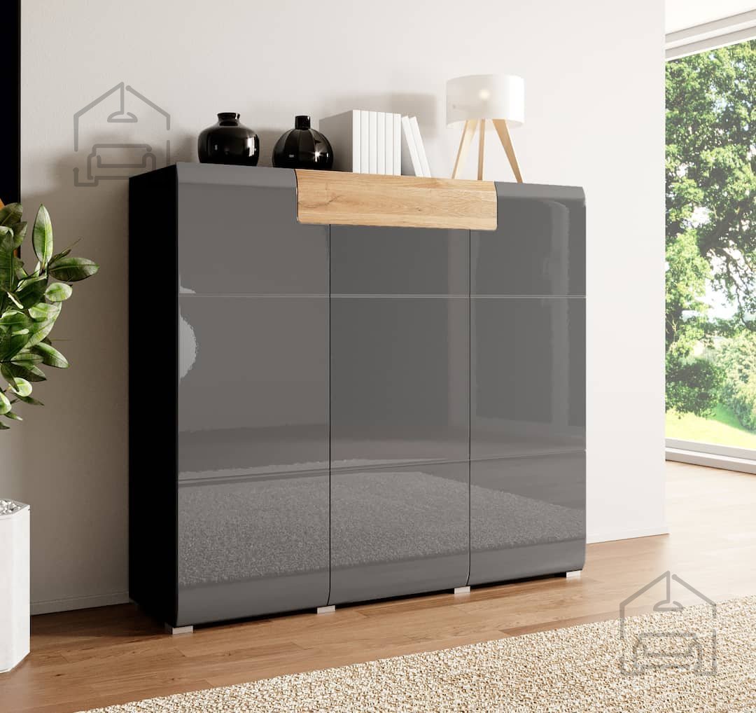 Sind Sie auf der Suche nach der perfekten Kombination aus Eleganz, Funktionalität und modernem Design für Ihr Zuhause? Wir präsentieren Ihnen die Kommode Toledo in der raffinierten Farbkombination aus Anthrazit und Grandson Eiche, die jeden Raum mit einem Hauch von Modernität und Praktikabilität bereichern wird.