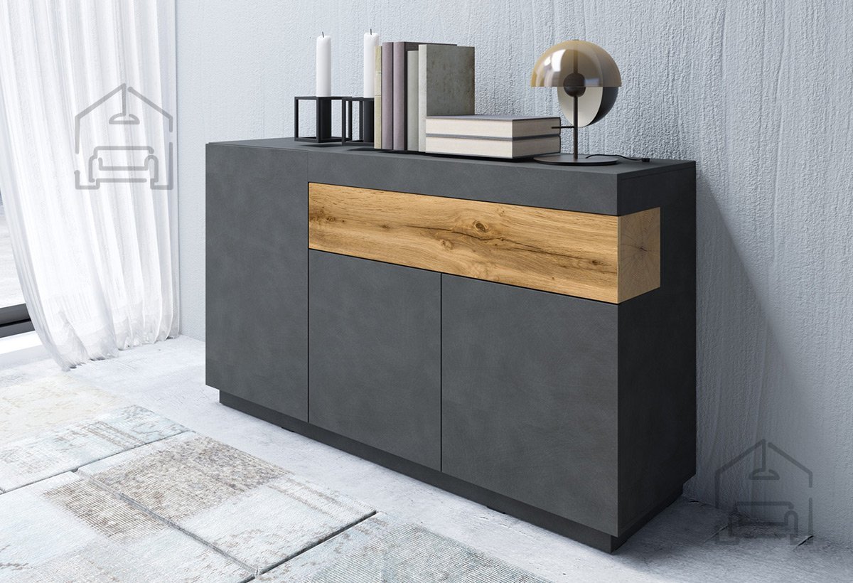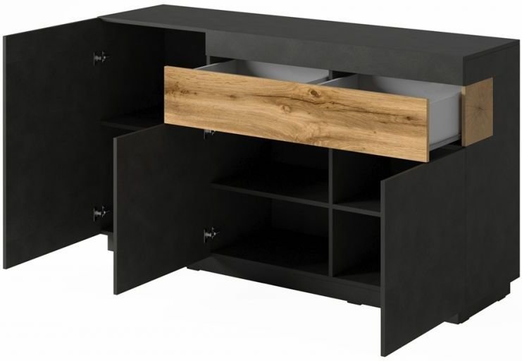 1. Modernes Design: Die Kommode Silke 2 besticht durch ihr modernes Design mit einem schwarzen matten Korpus und Fronten in edler Wotan Eiche. Diese Farbkombination verleiht Eleganz und Raffinesse und fügt sich harmonisch in verschiedene Einrichtungsstile ein.