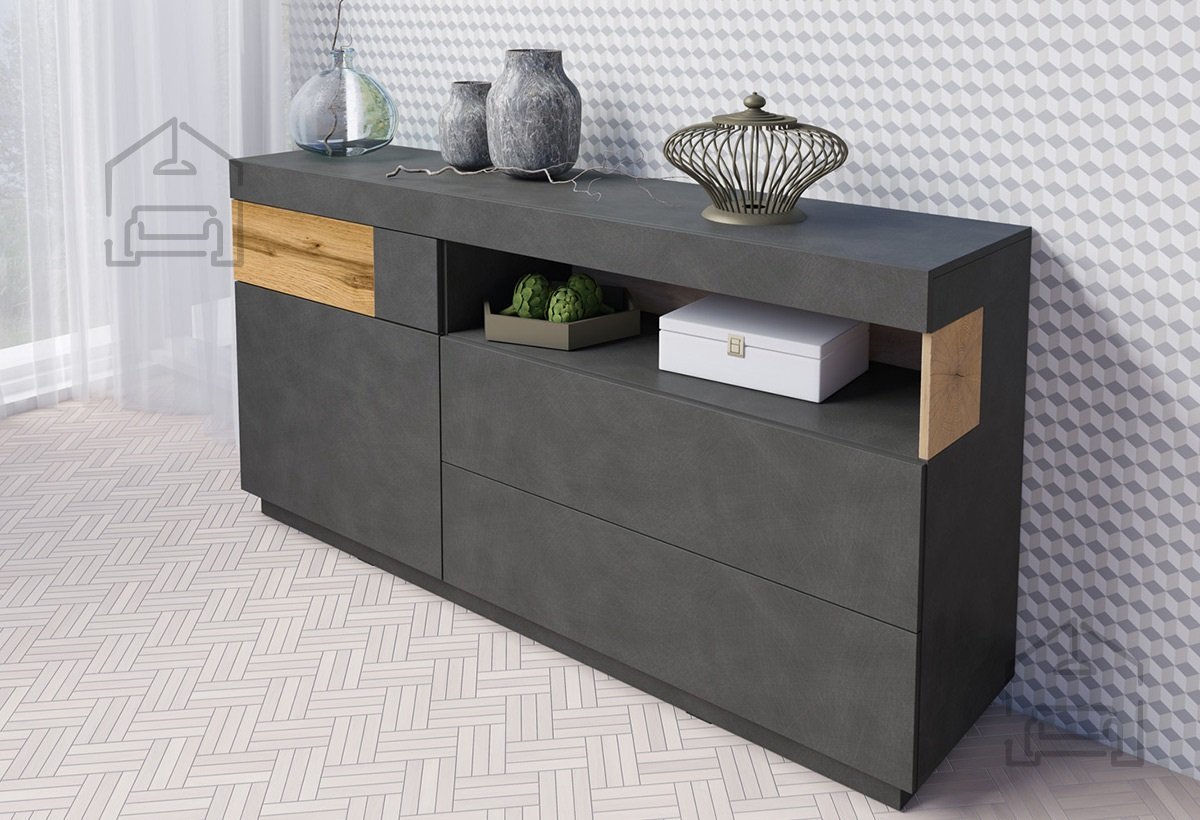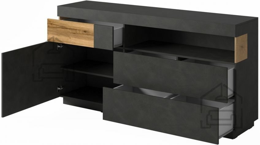 Wir präsentieren Ihnen die Kommode Silke 4 – Schwarz matt / Wotan Eiche – 241NGY47, die modernes Design mit außergewöhnlicher Funktionalität vereint und Ihrem Zuhause einen Hauch von Eleganz und Wärme verleiht. Diese hervorragende Kommode mit den Maßen 169x40x85 cm ist die perfekte Wahl für alle, die hochwertiges Möbel und ein anspruchsvolles Erscheinungsbild schätzen.
