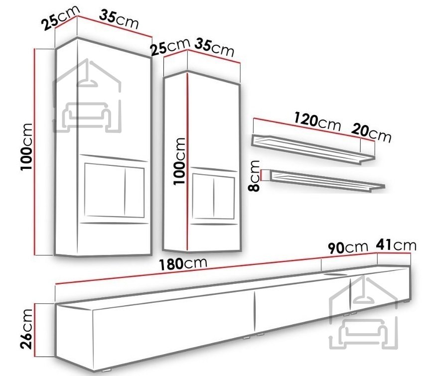 Mit den Maßen 270x41x0 cm ist die Wohnwand Athens so konzipiert, dass sie ausreichend Platz für all Ihre Multimedia-Geräte, Bücher und dekorativen Elemente bietet. Zudem besteht die Möglichkeit, LED-Beleuchtung hinzuzufügen, die gegen Aufpreis erhältlich ist und so eine angenehme Atmosphäre im Raum schafft. Zahlreiche Stauräume ermöglichen die perfekte Organisation Ihres Zuhauses, während alles stets griffbereit bleibt. Die Wohnwand Athens ist auf Funktionalität und Ästhetik ausgelegt, was sie zur idealen Lösung für all Ihre Aufbewahrungsbedürfnisse macht.