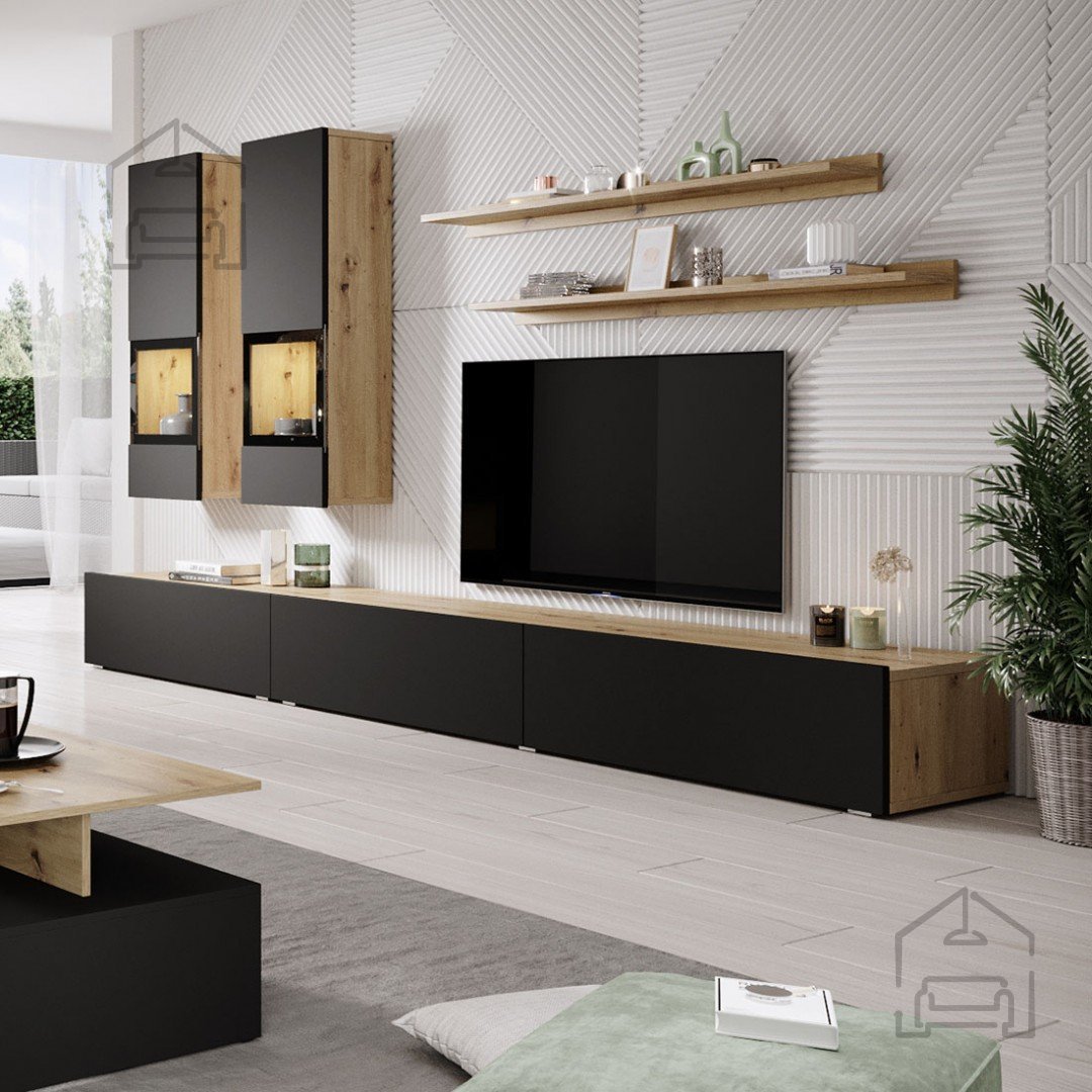 Die Farbe Artisan/Schwarz Supermatt verleiht einen Hauch von Eleganz und Raffinesse, der sich mühelos in verschiedene Einrichtungsstile einfügt. Die Kombination aus schwarzem Supermatt und dem natürlichen Artisan-Ton schafft ein modernes und anspruchsvolles Erscheinungsbild, das zum Mittelpunkt Ihres Wohnzimmers wird.