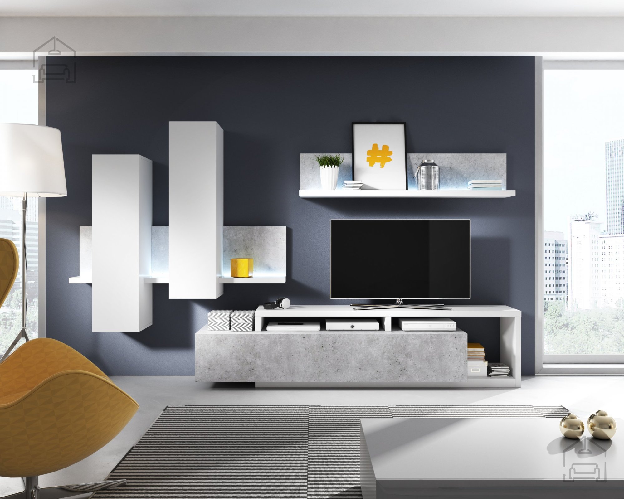 Wir präsentieren Ihnen ein außergewöhnliches Möbelstück, das Ihrem Wohnzimmer einen Hauch von Modernität und Funktionalität verleiht: TV-Regal Bota - Weiß/Beton Colorado - 2484FG09. Diese elegante Kombination aus Weiß und Betonoptik ist die perfekte Ergänzung für jedes moderne Zuhause.