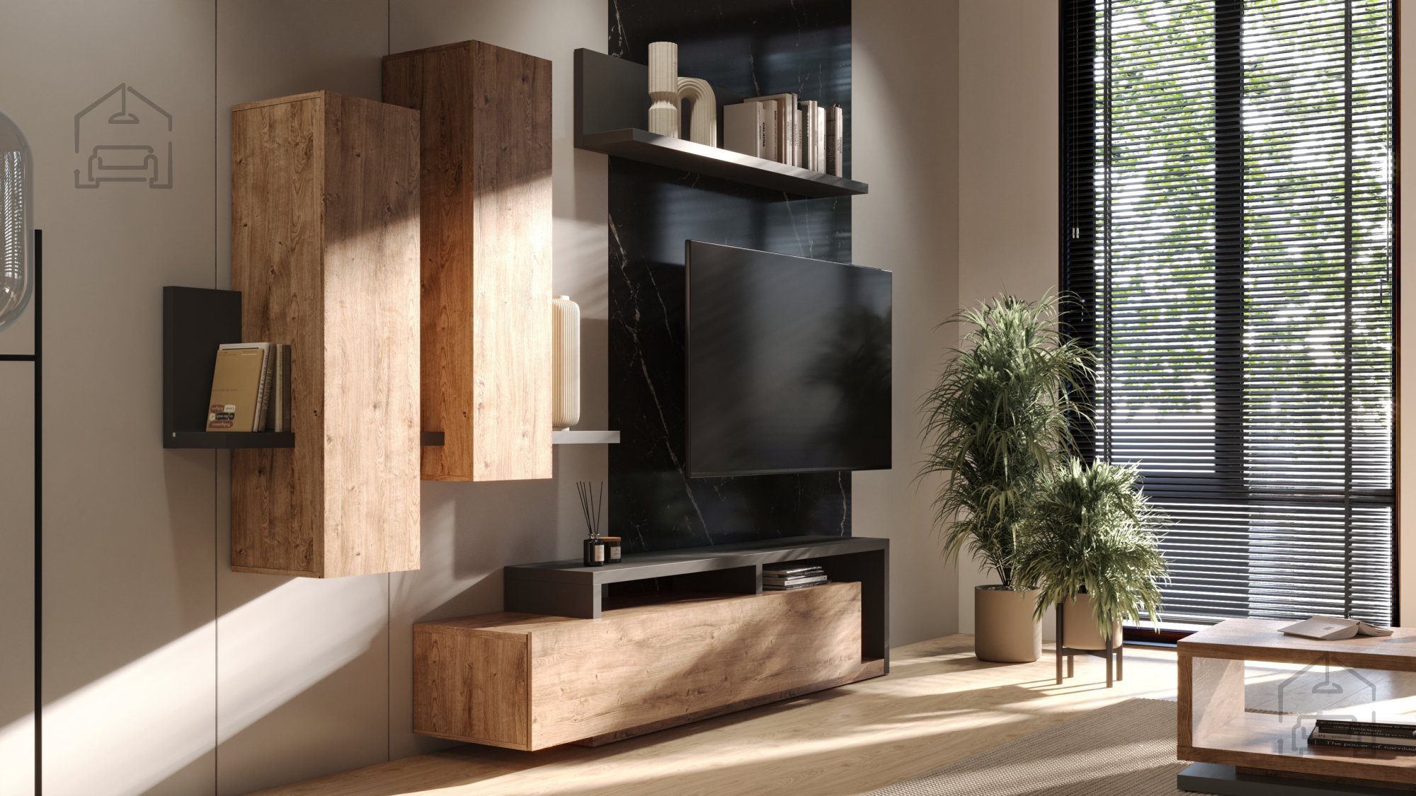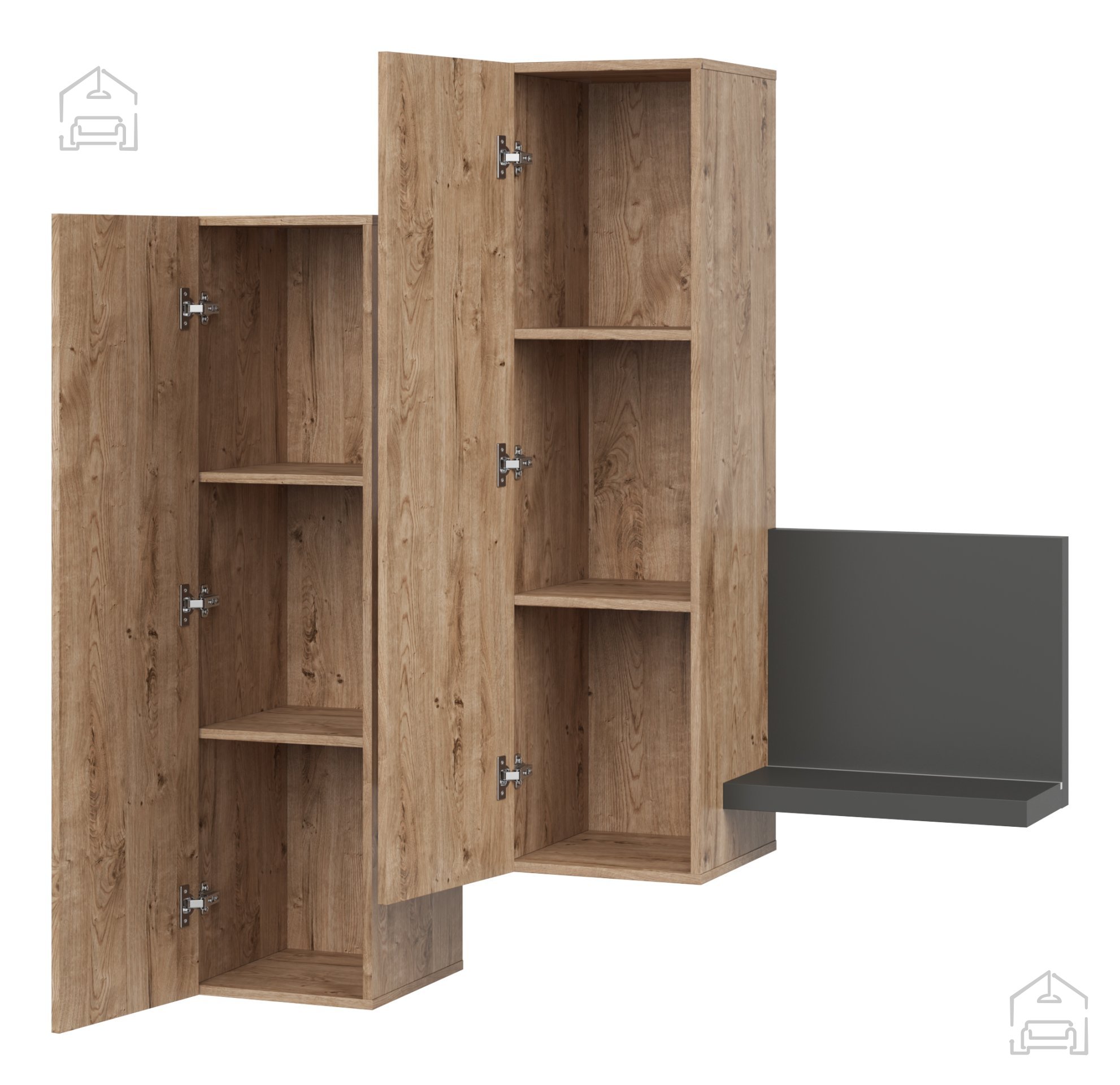 Wir präsentieren Ihnen ein hochwertiges Möbelstück, das Ästhetik und Funktionalität auf höchstem Niveau vereint – den Hängeschrank Bota in der Kombination aus elegantem Anthrazit und natürlicher Ribbec-Eiche. Dies ist nicht nur ein Schrank, sondern ein zentrales Element, das Ihren Wohnraum auf ein neues Niveau hebt.