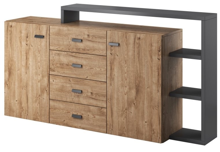 Wenn Sie Möbel suchen, die Stil, Qualität und Funktionalität vereinen, ist die Kommode Bota - Anthrazit/Ribbec Eiche Ihre beste Wahl. Ganz gleich, ob Sie Ihr Zuhause renovieren oder einfach ein neues Stück zu Ihrer Einrichtung hinzufügen möchten – diese Kommode erfüllt all Ihre Ansprüche an Stauraum und ästhetische Attraktivität. Wählen Sie die Kommode Bota und genießen Sie zeitlose Eleganz und Praktikabilität, die sie in Ihr Zuhause bringt.