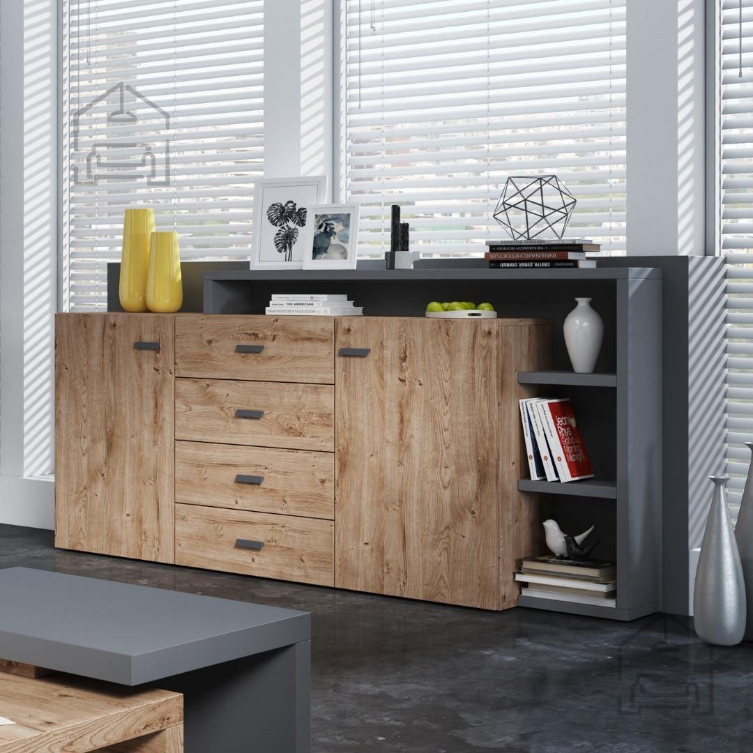 Wenn Sie die perfekte Kombination aus Eleganz, Funktionalität und modernem Design suchen, ist die Kommode Bota - Anthrazit/Ribbec Eiche Ihre ideale Wahl. Dieses raffinierte Möbelstück ist nicht nur optisch ansprechend, sondern auch äußerst praktisch, da es sich perfekt an verschiedene Einrichtungsstile und Bedürfnisse anpasst.
