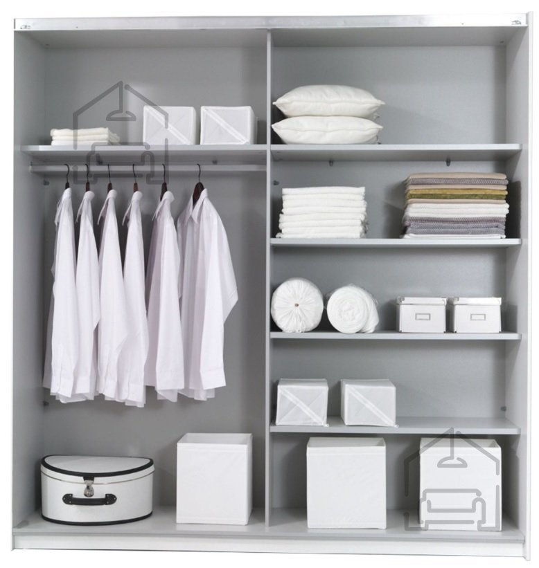 Im Inneren des Schranks finden Sie clever angeordnete Regale und Kleiderstangen, die eine optimale Organisation Ihrer Kleidung ermöglichen. Der Spiegel an der Front ist nicht nur ein ästhetisches Detail, sondern auch ein äußerst praktisches Element, das Ihnen erlaubt, Ihr Erscheinungsbild vor dem Verlassen des Hauses schnell zu überprüfen.
