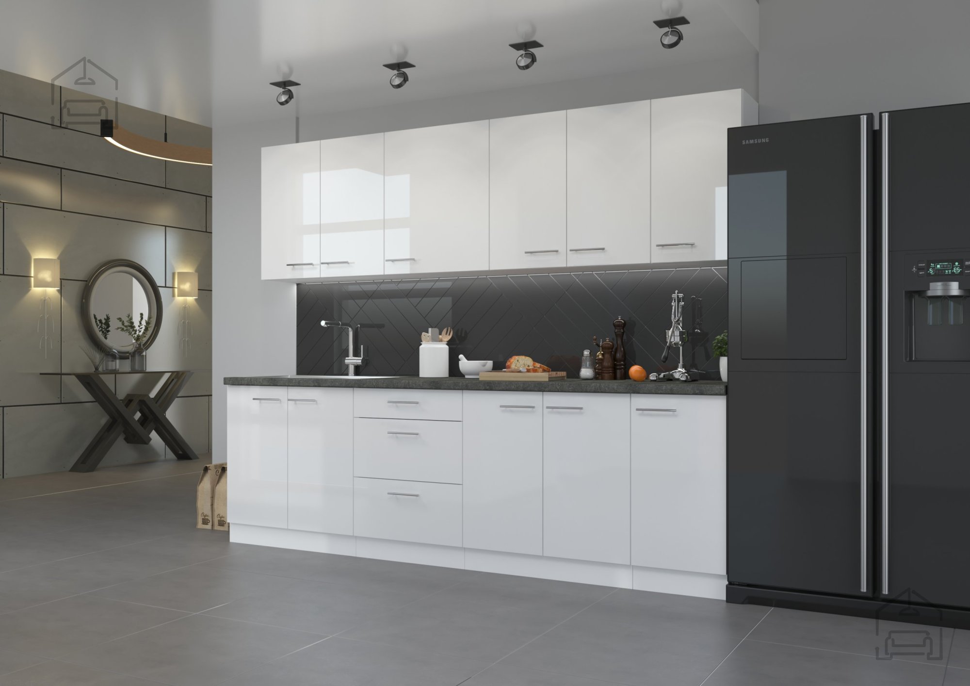 Die Küche Lara, des polnischen Markenherstellers Stolarz-Lempert, passt perfekt in ein geräumiges und modernes Interieur, und die große Auswahl an Elementen ermöglicht die Gestaltung eines funktionalen Küchenbereichs. Elemente mit einfachem Design und großen glatten Oberflächen entsprechen perfekt den aktuellen Stiltrends und verleihen Ihrer Küche ein geräumiges Aussehen. Die Fronten sind aus 16 mm MDF-Platte, 1 mm ABS-Kante, und der Korpus aus laminierten Platten mit einer Dicke von 16 mm gefertigt.