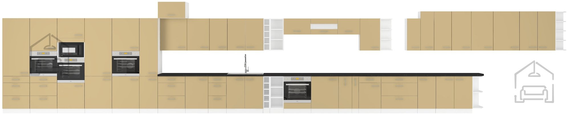 Die Küche Lara der polnischen Marke Stolarz-Lempert passt hervorragend in ein geräumiges und modernes Interieur, und die große Auswahl an Elementen ermöglicht die Gestaltung eines funktionalen Küchenraums. Die Elemente des einfachen Designs und der großen glatten Oberflächen entsprechen perfekt den aktuellen Stiltrends und verleihen Ihrer Küche ein geräumiges Aussehen. Die Fronten sind aus 16 mm MDF-Platte, 1 mm ABS-Kante, und der Korpus aus laminierten Platten mit einer Dicke von 16 mm gefertigt.