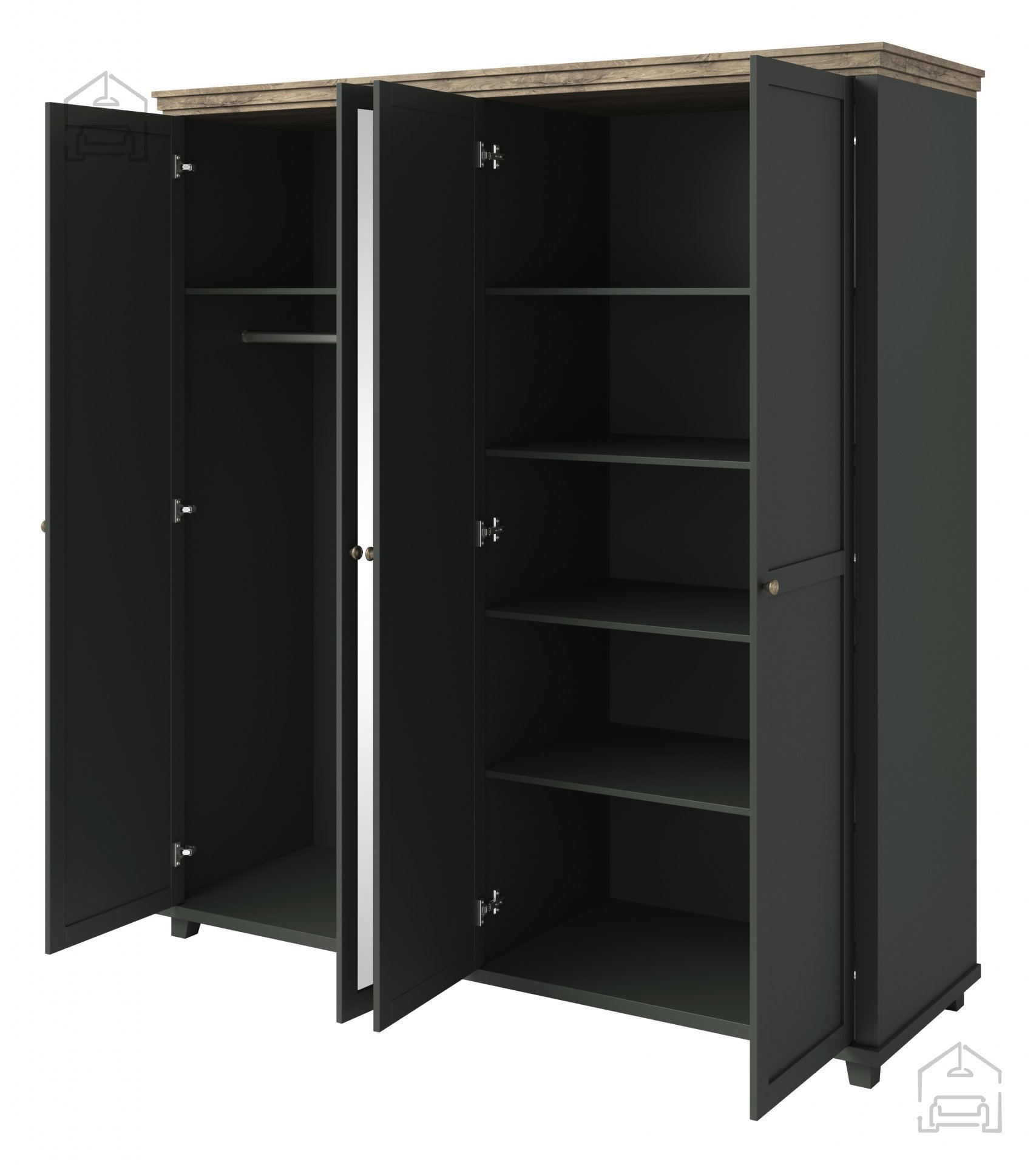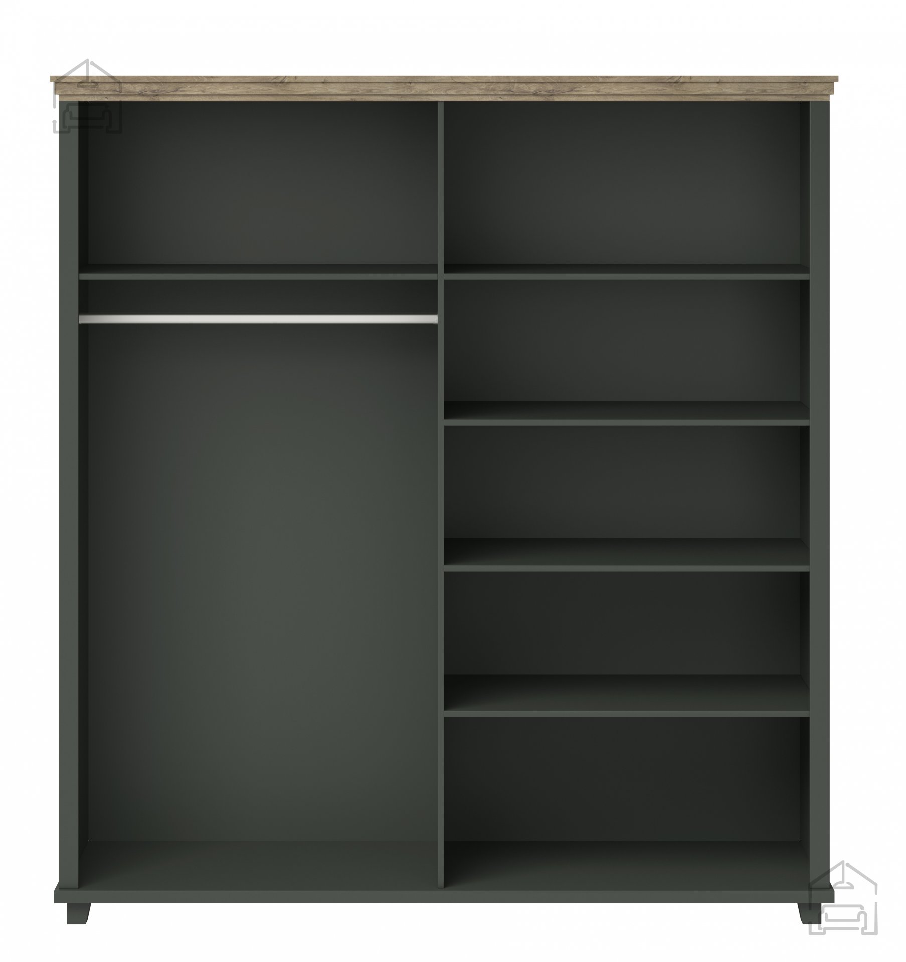 Die Wahl des Kleiderschranks Evora S bedeutet eine Investition in ein Möbelstück, das nicht nur Ihre Aufbewahrungsbedürfnisse erfüllt, sondern auch die Ästhetik Ihres Zuhauses aufwertet. Seine attraktive Kombination aus Grün und Eiche Lefkas bringt natürliche Wärme und Frische in Ihren Raum, während die durchdachte Innenaufteilung eine optimale Organisation ermöglicht.