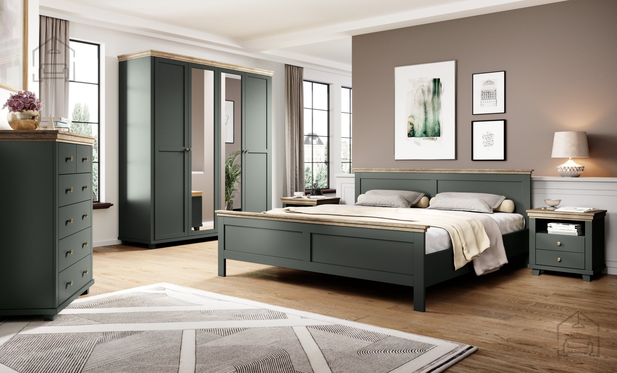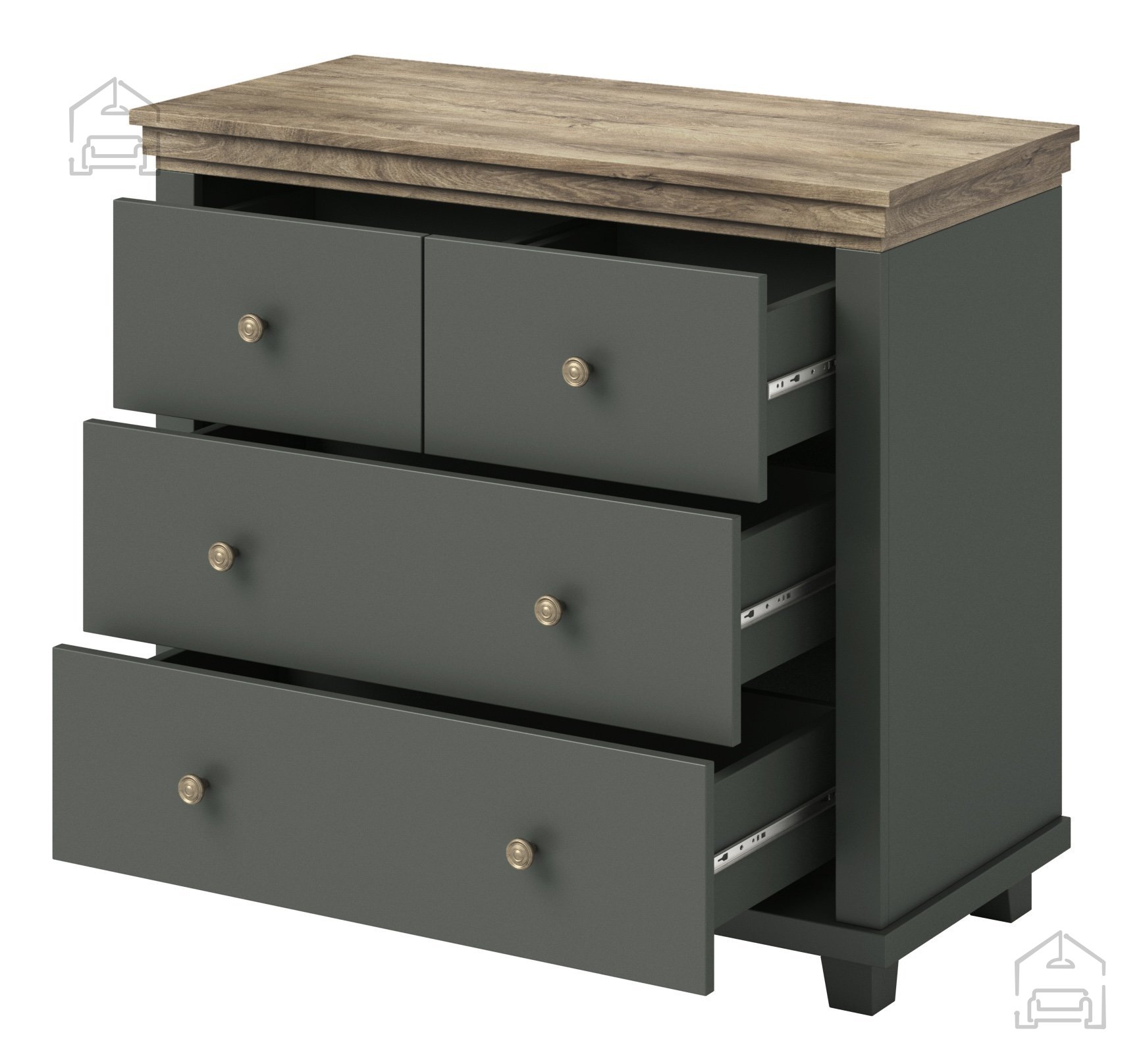 Einer der Hauptvorteile dieser Kommode ist ihre beeindruckende Farbkombination. Der Korpus der Kommode ist in einem eleganten Grün gestaltet, das zusammen mit der natürlichen Optik der Eiche Lefkas ein angenehmes und modernes Ambiente schafft. Die Frontseite der Kommode behält dieses Grün bei, was Ihrem Interieur einen Hauch von Frische und Einzigartigkeit verleiht.