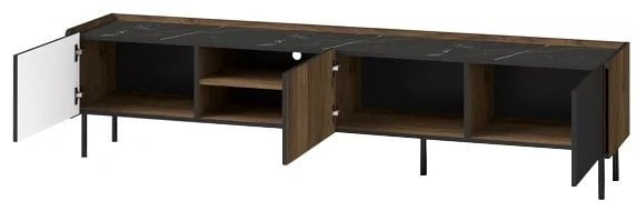 Die Möbelkollektion für das Wohnzimmer Prestigo enthält eine Vielzahl von verschiedenen Elementen, die viel Stauraum für Ihre Bücher, Gesellschaftsspiele, Dokumente und andere Gegenstände bieten. Die Möbel aus der Kollektion können Sie einzeln nach Elementen Ihrer Wahl bestellen und so das Interieur nach Ihren Bedürfnissen und Wünschen gestalten. Die Möbelkollektion Prestigo ist in einer dunklen Version mit der Farbe Nussbaum San Sebastian und schwarzer Matterhältlich. Metallfüße betonen den Charakter und die Robustheit der Prestigo-Kollektion.