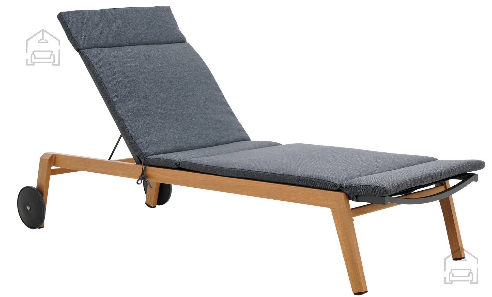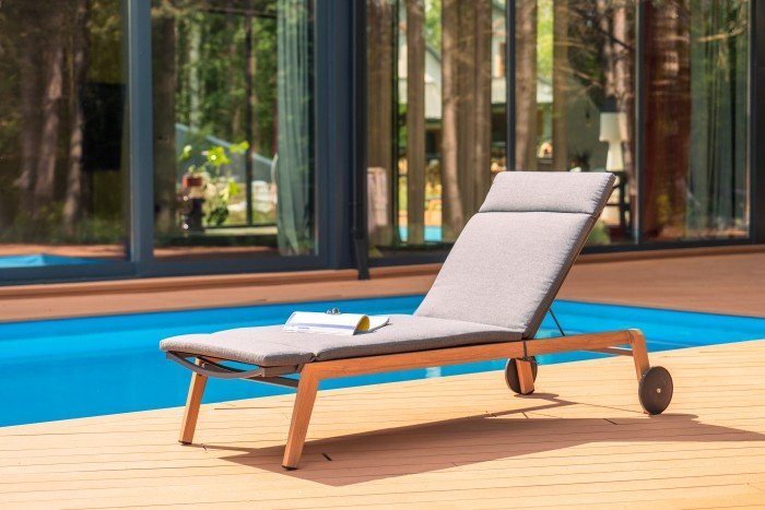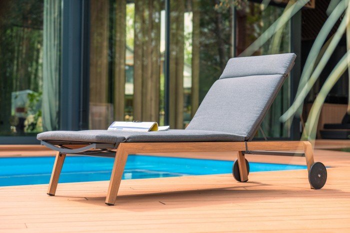 Metall und Stoff in elegantem Grauton: Liegestuhl Salzburg – Mirpol.