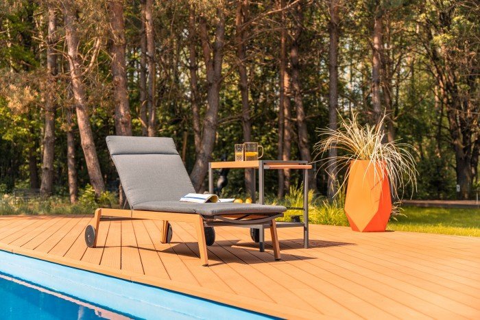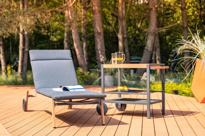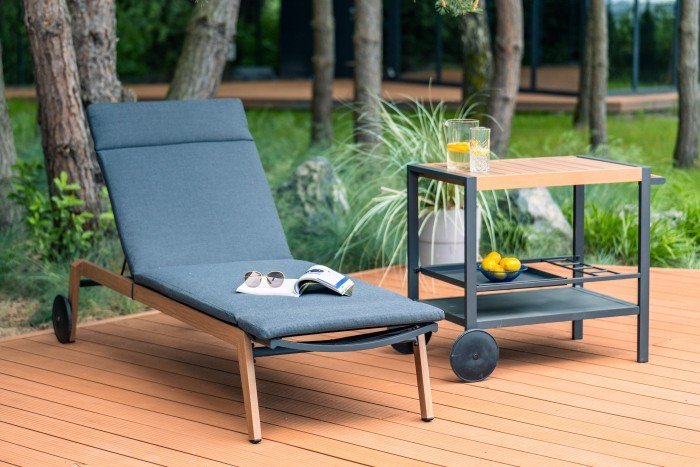 Der Liegestuhl Salzburg ist aufgrund seines durchdachten Designs sowohl für große Gärten als auch für kleinere Terrassen geeignet. Die Metallkonstruktion verleiht ihm Stabilität, während die textile Oberfläche den Komfort bietet, den Sie für vollständige Entspannung benötigen. Dank der verstellbaren Rückenlehne können Sie schnell zwischen verschiedenen Positionen wechseln, was bedeutet, dass Sie ihn sowohl zum Lesen, Ausruhen als auch Sonnenbaden verwenden können. Die großen Räder sorgen dafür, dass sich der Liegestuhl leicht auf harten und weichen Oberflächen bewegen lässt, sodass Sie ihn dort platzieren können, wo gerade am meisten Sonne oder Schatten ist.