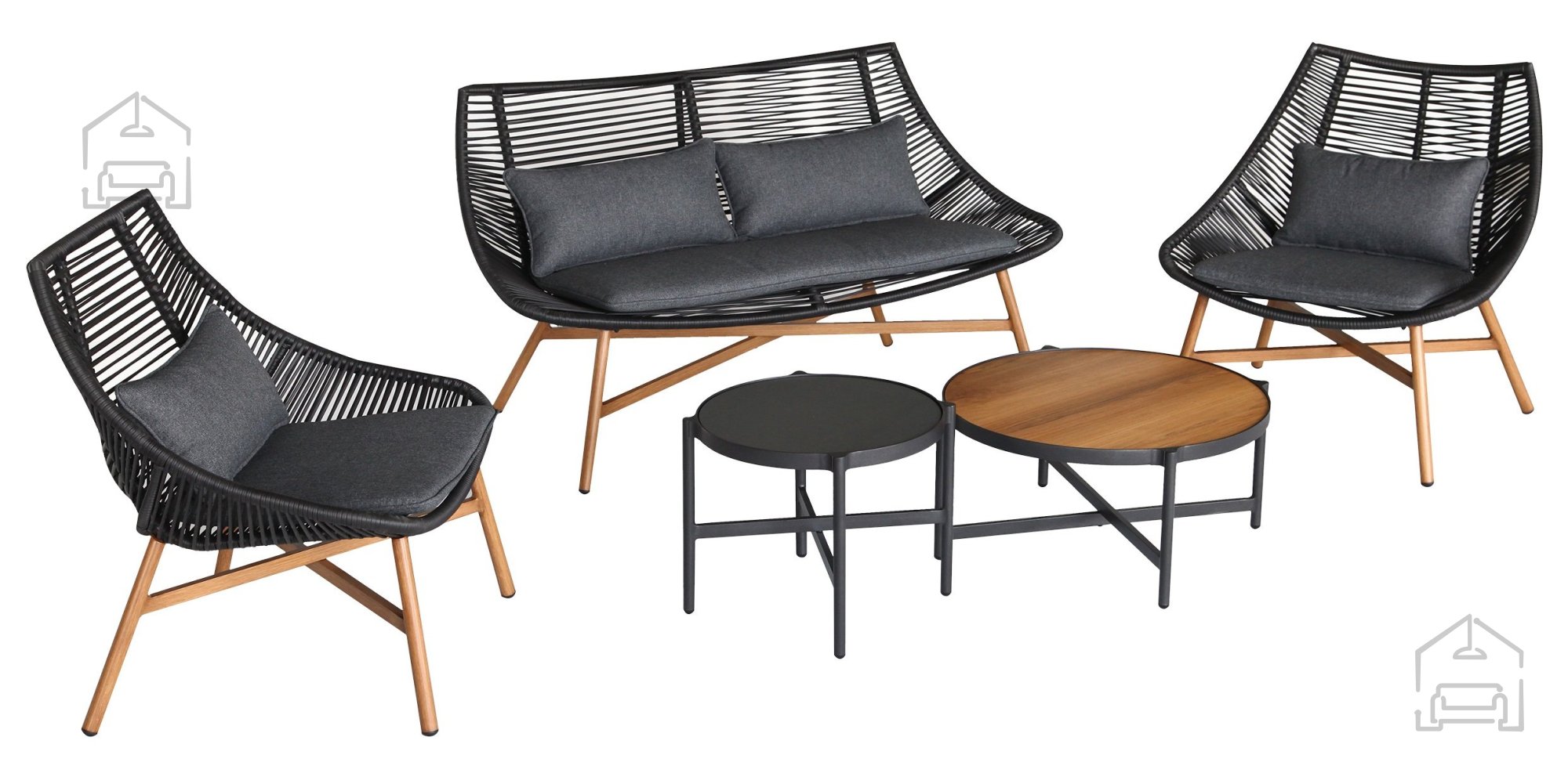 Optimal profilierte Sitze in Kombination mit kleineren Sitzflächen sorgen für hohen Ruhekomfort. Das Set mit 2 Tischen ist ideal zum Entspannen bei einer Tasse Kaffee. Es ist für 4 Personen ausgelegt, eignet sich aber auch für Treffen in größerer Gesellschaft.