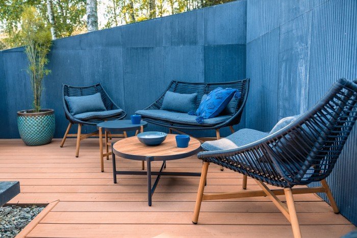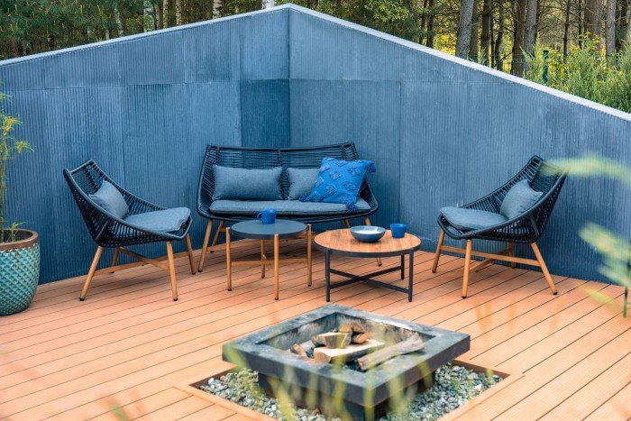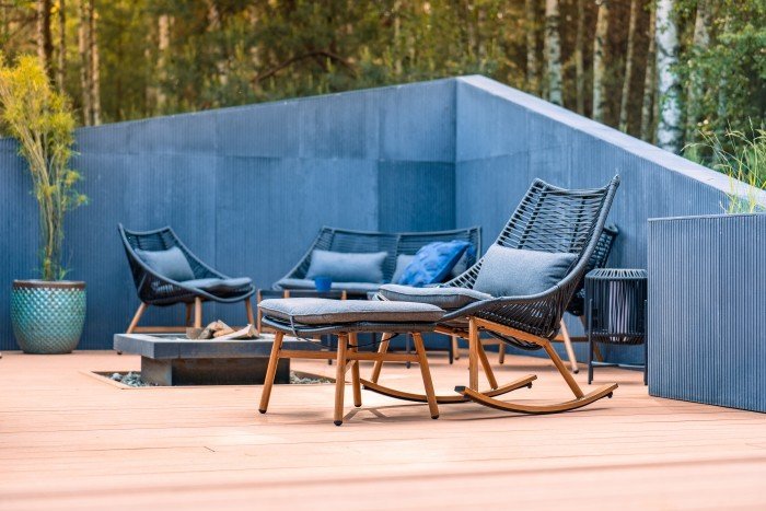Das Ensemble imitiert ein modernes Design, das hervorragend zu trendigen Außenbereichen passt. Die Kombination aus Schwarz, Graphit und Waldtönen wirkt sehr elegant und gleichzeitig universell. Die Möbel können erfolgreich als Ausstattung für Garten und Terrasse sowie für das Haus verwendet werden. Zum Set können ein passendes Dach, Liegestühle und andere stilvolle Accessoires hinzugefügt werden.