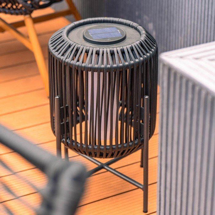 Stahl und Polyrattan: Mirpol Solarleuchte Wien.