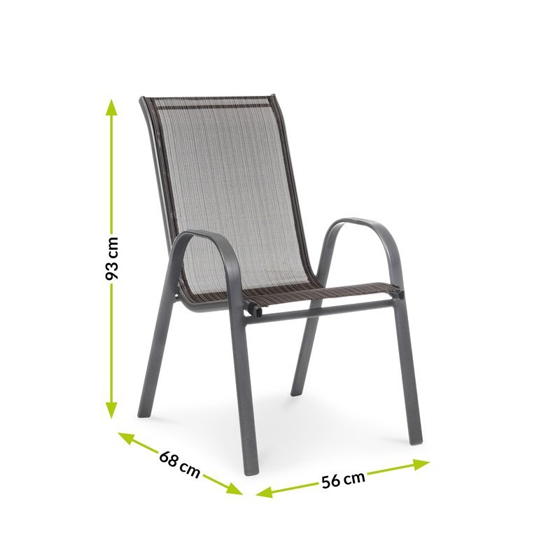 Der Rahmen des Stuhls besteht aus Stahl, der für seine hohe Festigkeit und Verformungsbeständigkeit bekannt ist. Die Oberfläche ist zusätzlich gegen Korrosion geschützt, was bedeutet, dass der Stuhl auch unter Außenbedingungen gut funktioniert. Die Kombination aus Metall und atmungsaktivem Gewebe ermöglicht eine einfache Reinigung und Pflege – ein feuchtes Tuch und ein mildes Reinigungsmittel genügen. Eine solche Konstruktion stellt sicher, dass der Stuhl seine Funktionalität und sein schönes Aussehen auch nach längerer Sonneneinstrahlung und Feuchtigkeit beibehält.
