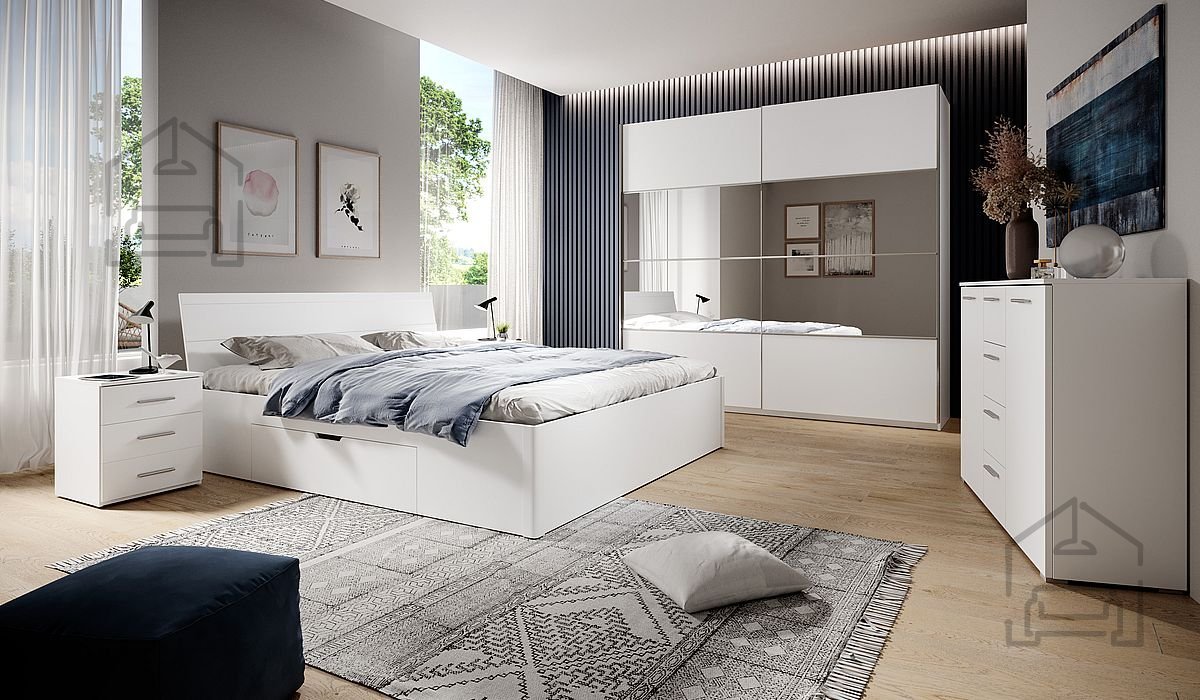 Investieren Sie in Möbel, die nicht nur Ihre ästhetischen Ansprüche erfüllen, sondern auch praktische Bedürfnisse abdecken. Das Schlafzimmer Beta - Weiß ist so gestaltet, dass es sich Ihrem Lebensstil anpasst und die Qualität Ihres Alltags verbessert. Zögern Sie nicht und sichern Sie sich Ihr Set noch heute!