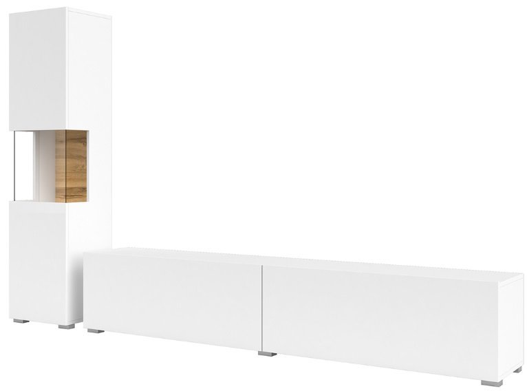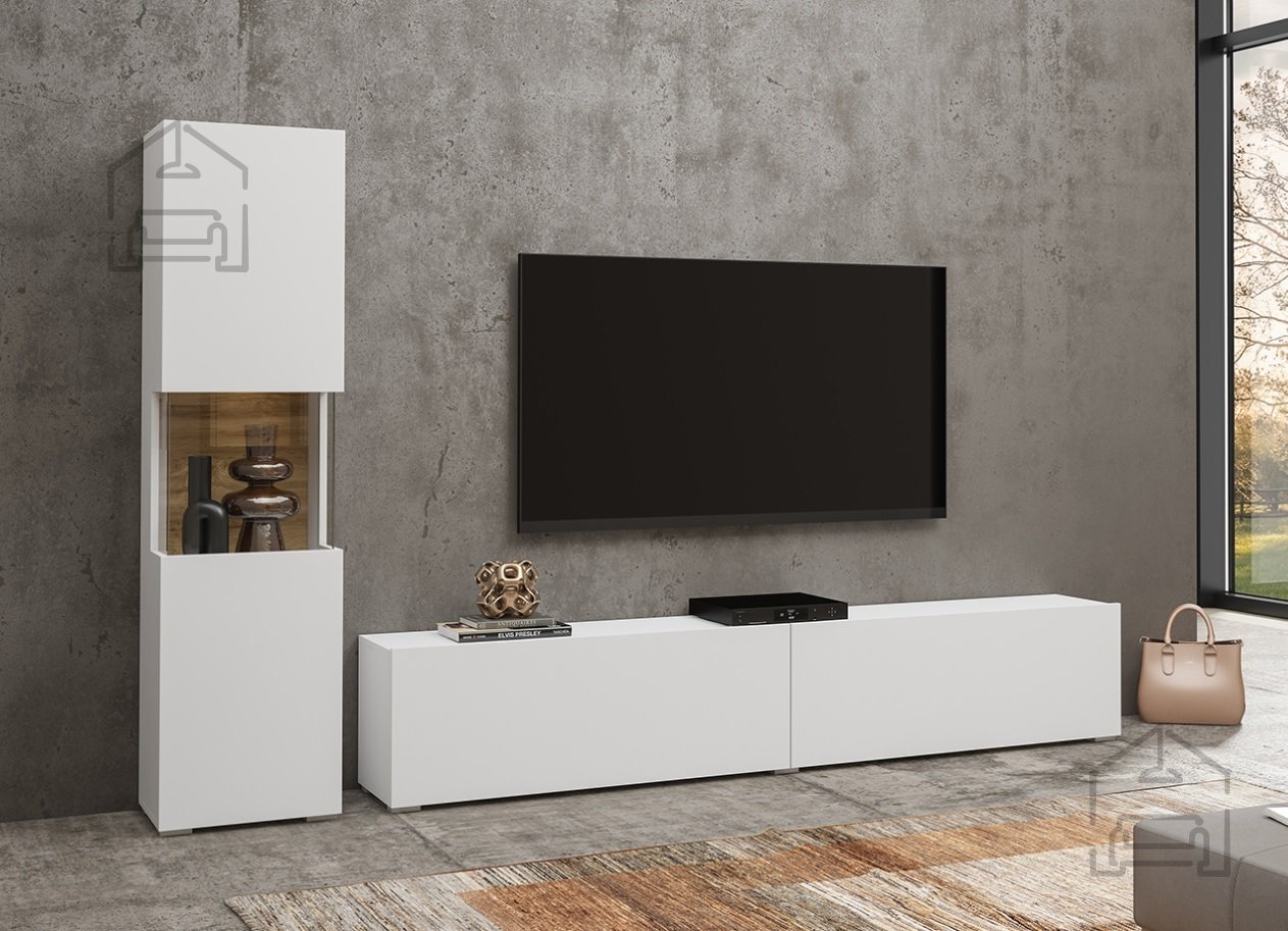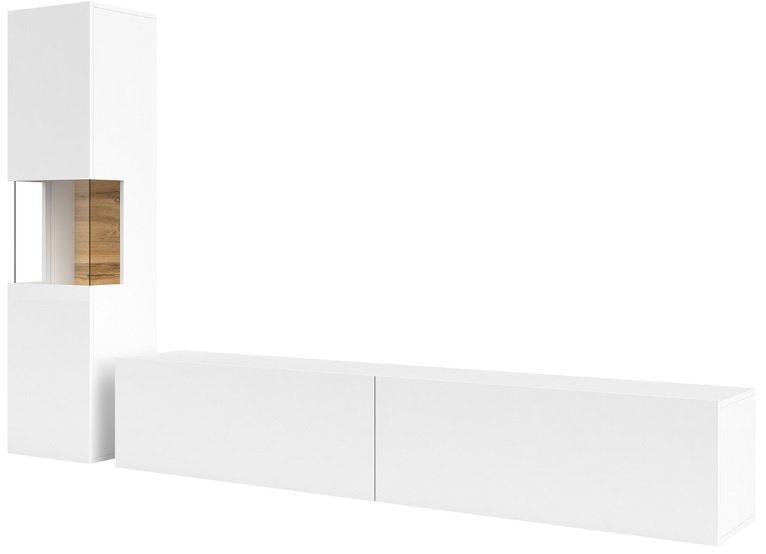Wir präsentieren Ihnen die Wohnwand Ava - Weiß/Wotaneiche - 249NLM09, die für Liebhaber des minimalistischen Stils und modernen Interior-Designs entworfen wurde. Dieses einzigartige Möbelstück ist nicht nur ästhetisch ansprechend, sondern auch äußerst funktional. Mit den Maßen 206x26x140 cm eignet es sich für verschiedene Räume und ermöglicht eine maximale Platzausnutzung in Ihrem Zuhause.