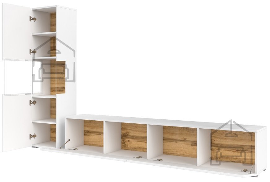 Wenn Sie Möbel suchen, die Ästhetik, Funktionalität und Qualität vereinen, ist die Wohnwand Ava - Weiß/Wotaneiche - 249NLM09 die perfekte Wahl für Sie. Ihr minimalistisches Design, ihre Flexibilität und ihr Stauraum sorgen dafür, dass Ihr Zuhause modern und geordnet wirkt. Zögern Sie nicht – bringen Sie noch heute Eleganz und Praktikabilität in Ihr Zuhause!