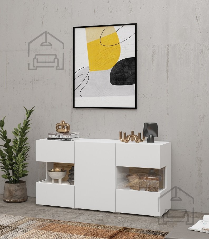 Für ein noch raffinierteres Erscheinungsbild und zusätzliche Funktionalität ist eine optionale LED-Beleuchtung gegen Aufpreis erhältlich. Diese Option betont nicht nur den ästhetischen Wert der Kommode, sondern sorgt auch für eine praktische Beleuchtung, die besonders in den Abendstunden nützlich ist.