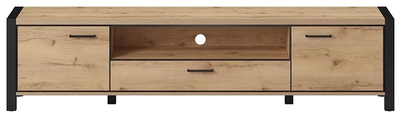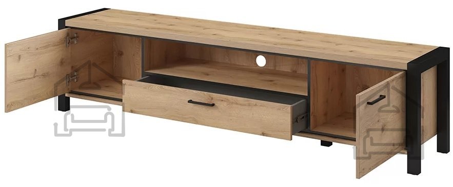 Die Möbelkollektion für Wohnzimmer AKTIV ist im industriellen Stil gestaltet, der sich durch Schlichtheit der Formen, Robustheit und Zweckmäßigkeit auszeichnet. Die außergewöhnliche Verarbeitung der Möbel verleiht jedem Interieur einen einzigartigen Charakter. Auf der Basis der Farbe von Naturholz mit charakteristischer Struktur und Maserung wird ein tiefes Schwarz eingerahmt. Diese Kombination wirkt sehr dynamisch, kontrastreich und zugleich vollkommen! Die Kollektion mit mehreren Elementen bietet unbegrenzte Gestaltungsmöglichkeiten, während praktische Designlösungen die Schaffung eines schönen und funktionalen Wohnzimmers ermöglichen.