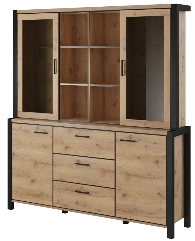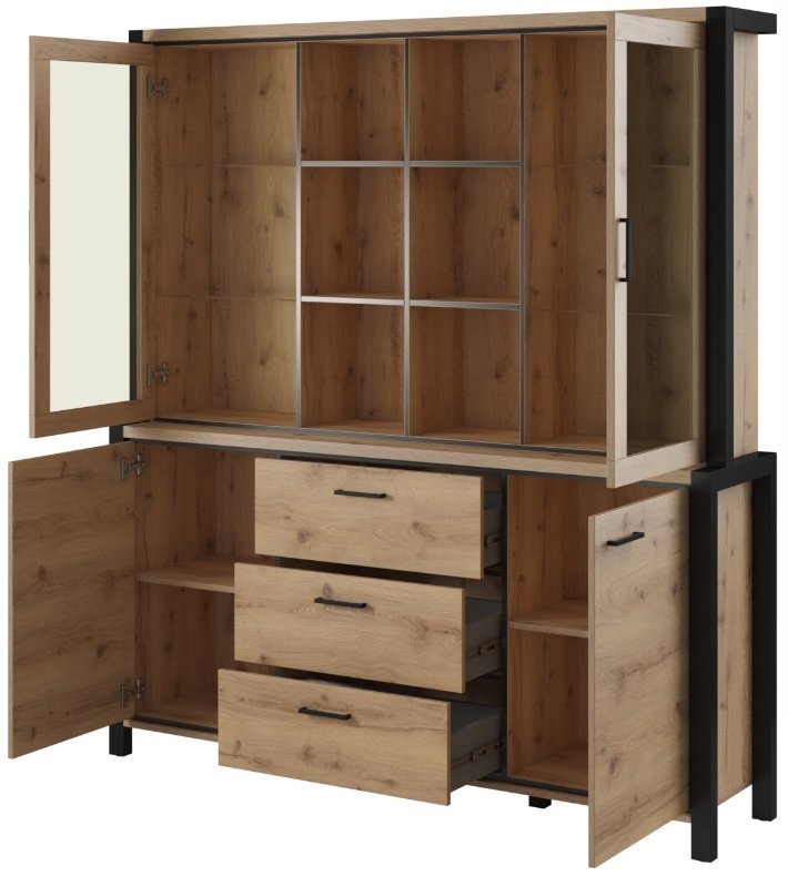 Die Wohnzimmermöbel-Kollektion AKTIV ist im industriellen Stil gestaltet, der sich durch Schlichtheit der Formen, Robustheit und Funktionalität auszeichnet. Die außergewöhnliche Verarbeitung der Möbel verleiht jedem Interieur einen einzigartigen Charakter. Auf Basis der Farbe von Naturholz mit charakteristischer Struktur und Maserung wird ein tiefes Schwarz eingerahmt. Diese Kombination wirkt sehr dynamisch, kontrastreich und zugleich perfekt! Die Kollektion mit mehreren Elementen bietet unbegrenzte Gestaltungsmöglichkeiten, während praktische Designlösungen die Schaffung eines schönen und funktionalen Wohnzimmers ermöglichen.
