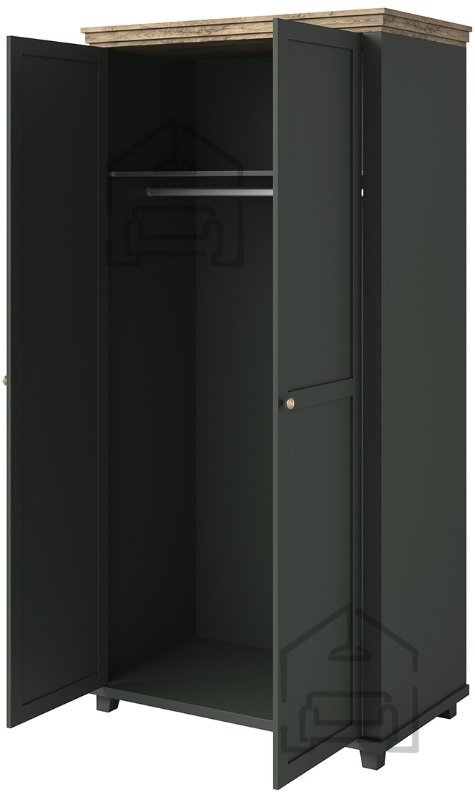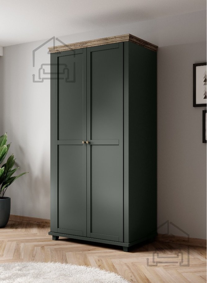 Die grüne Farbe, die bei diesem Modell dominiert, ist bekannt dafür, beruhigend zu wirken und ein Gefühl von Frische und Balance zu vermitteln. In Kombination mit dem natürlichen Look der Eiche Lefkas bringt dieser Schrank Wärme und Behaglichkeit in jeden Raum.