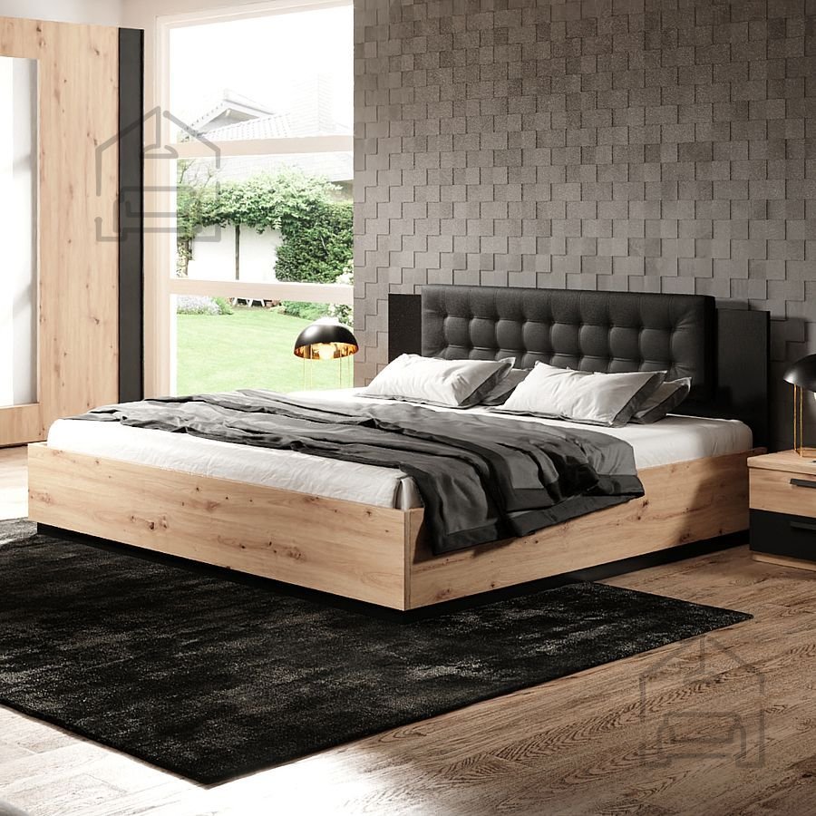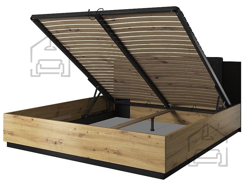 Das Bett Sigma misst 186x205x90 cm, was ausreichend Platz für einen erholsamen Schlaf bietet. Es besteht aus laminierter Spanplatte, was Langlebigkeit und Stabilität garantiert. Die Farbkombination aus Artisan-Eiche und Schwarz verleiht einen modernen, eleganten Touch, der sich leicht in verschiedene Einrichtungsstile integrieren lässt.
