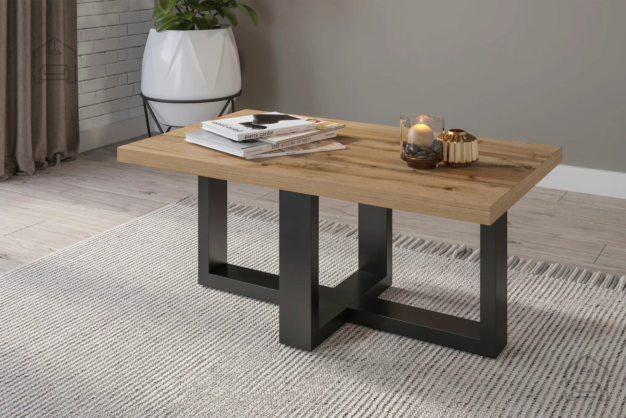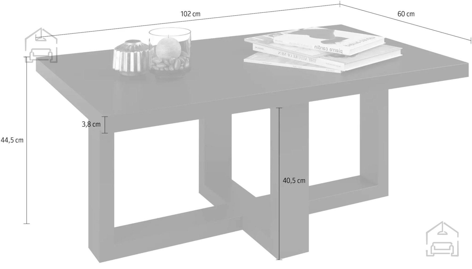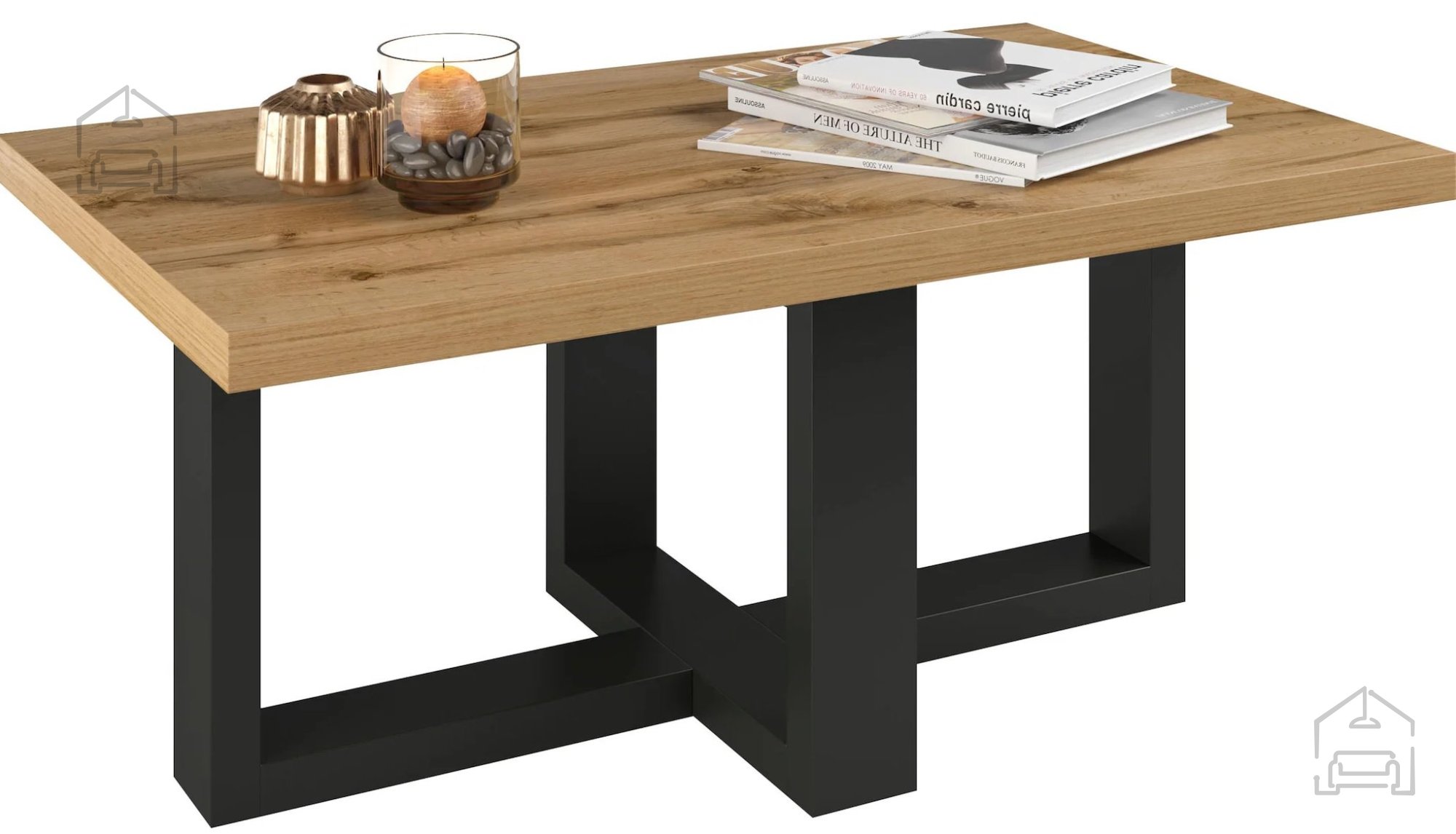 Der Tisch misst 102x60x44,5 cm und ist damit perfekt für kleinere Räume geeignet, in denen jeder Zentimeter zählt. Er besteht aus hochwertiger, laminierten Spanplatte, was eine lange Lebensdauer sowie Widerstandsfähigkeit gegen alltägliche Abnutzung garantiert. Die kontrastreiche Kombination aus Schwarz-Onyx und Wotan-Eiche zieht nicht nur die Blicke auf sich, sondern passt sich auch hervorragend an verschiedene Einrichtungsstile an.