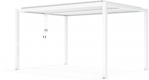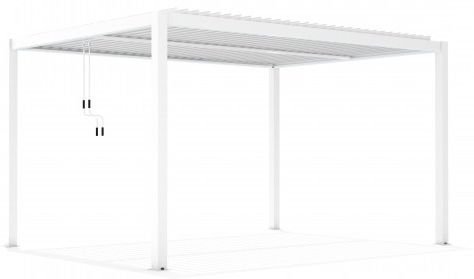 Hochwertige weiße Gartenpergola in der Größe 3 x 4 Meter. Ein eleganter Vorschlag zur Überdachung eines Außenbereichs zur Entspannung. Vollständig aus Aluminium gefertigt, was sich hervorragend für den Außenbereich eignet. Es ist ein Material mit erhöhter Korrosionsbeständigkeit. Die Pergola kann auf der Terrasse direkt an der Hauswand aufgestellt werden, aber auch als freistehendes Dach im Garten. Das Pergoladach ist mit einer manuellen Öffnung ausgestattet, die es Ihnen ermöglicht, die Beschattung des Ruhebereichs optimal an Ihre Bedürfnisse anzupassen. Die Konstruktion ist dank des stabilen Trägers robust. Zusätzlich ist sie mit einem Entwässerungssystem ausgestattet, das ideal für den täglichen Gebrauch ist.
