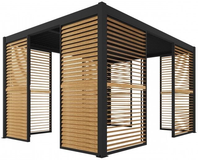Stahlrahmen und Holzfarbe: Verschiebbare Pergolenläden mit Balken 4 m – Mirpol.