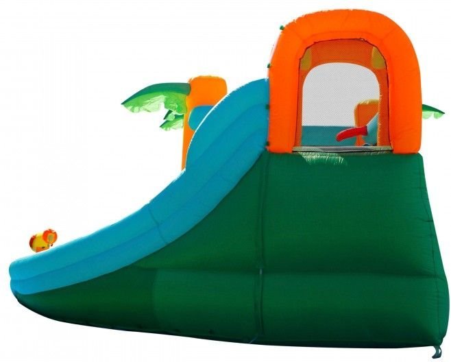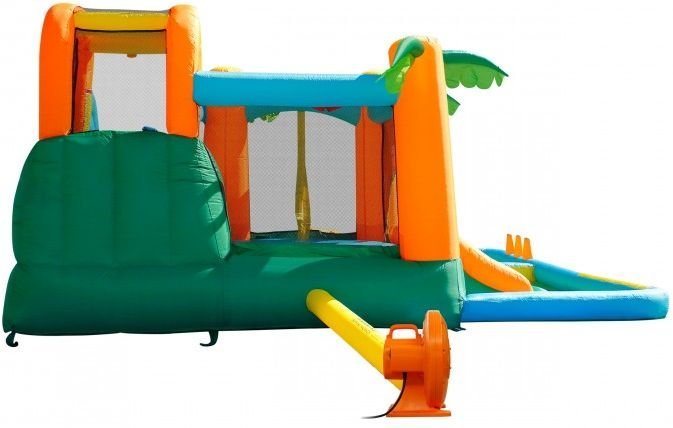 Für die Herstellung des Aufblasbaren wurde strapazierfähiges PVC verwendet. Die Sicherheit der Materialien und der Verarbeitung wird durch die erforderlichen Zertifikate bestätigt. Während der Nutzung muss die Konstruktion ständig mit einem elektrischen Gebläse aufgeblasen werden, das im Set enthalten ist, was in Kombination mit den geeigneten Materialien Komfort und Sicherheit beim Spielen gewährleistet.
