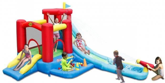 Der aufblasbare Spielplatz mit Rutsche und Bällen der Marke Mirpol vereint Spaß, Bewegung und Erfrischung in einem Produkt, das für die familiäre Nutzung im Freien konzipiert ist. Er ist aus hochwertigem PVC-Material gefertigt, das Festigkeit und Langlebigkeit gewährleistet und gleichzeitig den Komfort und die Sicherheit der Kinder beim Spielen bewahrt. Mit den Abmessungen Breite 330 cm, Tiefe 440 cm und Höhe 235 cm bietet er ausreichend Platz für das gemeinsame Spielen mehrerer Kinder gleichzeitig und ist daher eine ausgezeichnete Wahl für den Garten, den Hof oder größere Außenbereiche.