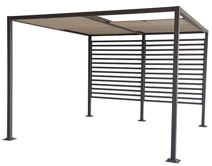 Ein besonderes Highlight der Pergola Pratto ist das verschiebbare Dach, mit dem sich die Schattenfläche flexibel anpassen lässt. So bleiben Sommertage stets angenehm – je nach Wunsch kann das Dach teilweise oder ganz geöffnet werden, um das ideale Maß an Licht und Schatten zu schaffen. Der Mechanismus ermöglicht ein leichtgängiges Verschieben des Stoffes, was die Bedienung erleichtert und die Lebensdauer des Materials verlängert.