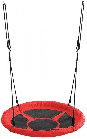 Die Kombination aus roter und schwarzer Farbe verleiht der Schaukel einen modernen, aber zugleich verspielten Charakter. Die rote Außenfläche passt gut zu den natürlichen Farbtönen des Gartens, während das schwarze Innenteil des Sitzes Eleganz und Zweckmäßigkeit hinzufügt, da Schmutz weniger auffällt. Aufgrund dieser Eigenschaften eignet sich die Schaukel sowohl für Kinderecken im Freien als auch als Ergänzung der Inneneinrichtung im Kinderzimmer oder Spielraum.