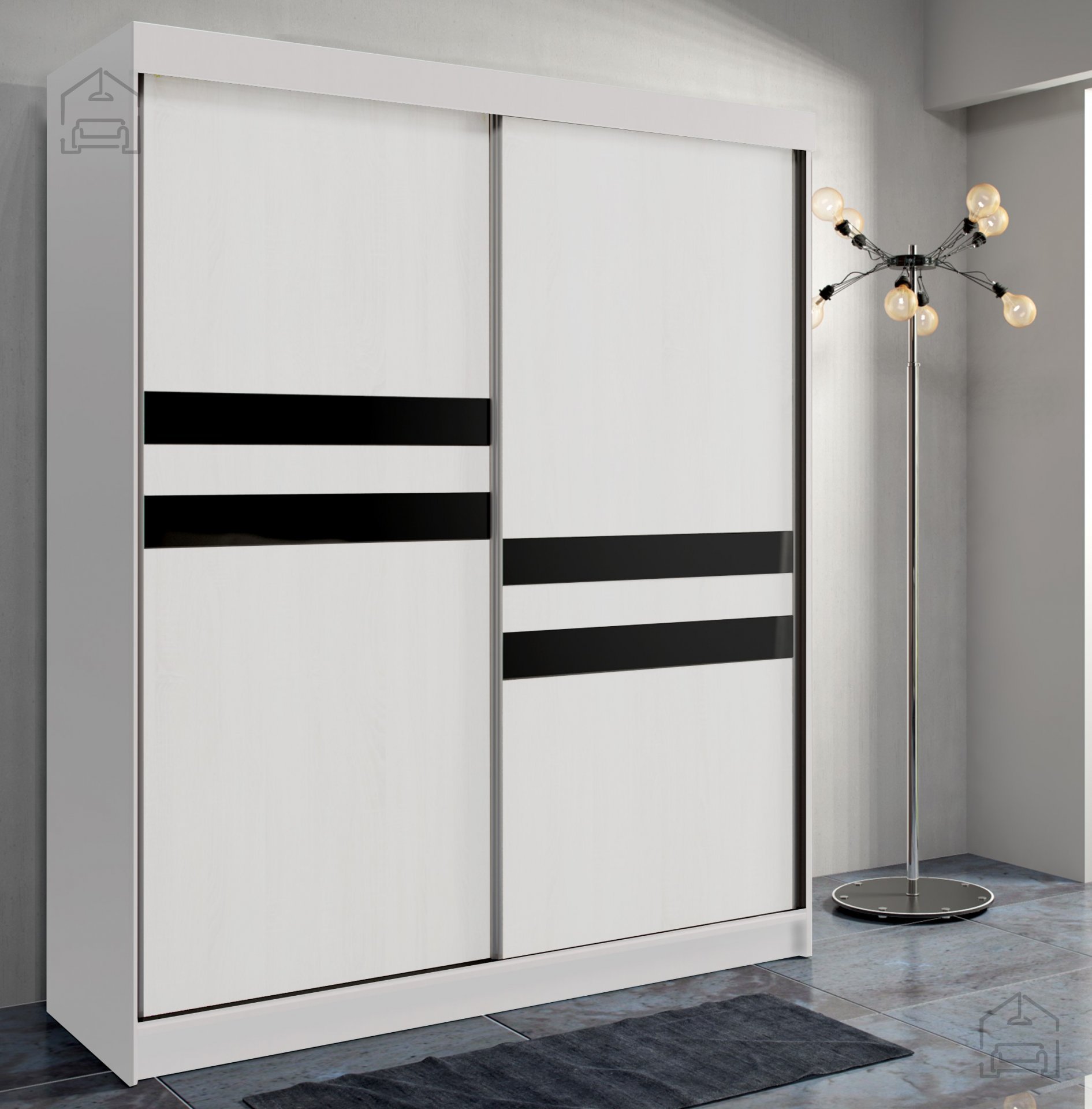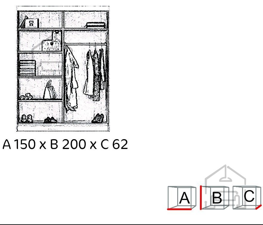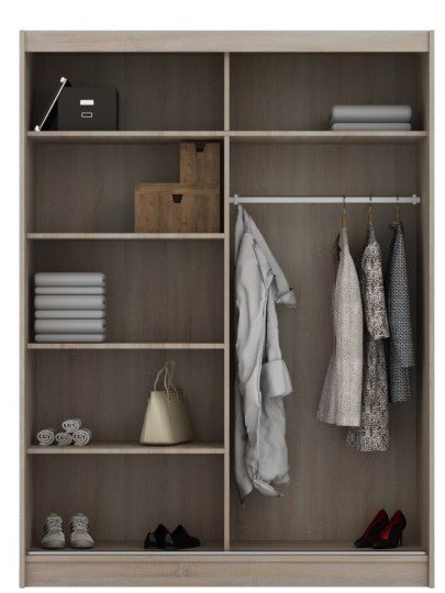 Zweitürige Schiebetüren: Der Schrank ist mit zweitürigen Schiebetüren ausgestattet, die einen einfachen Zugang zu Kleidung und Accessoires ermöglichen.