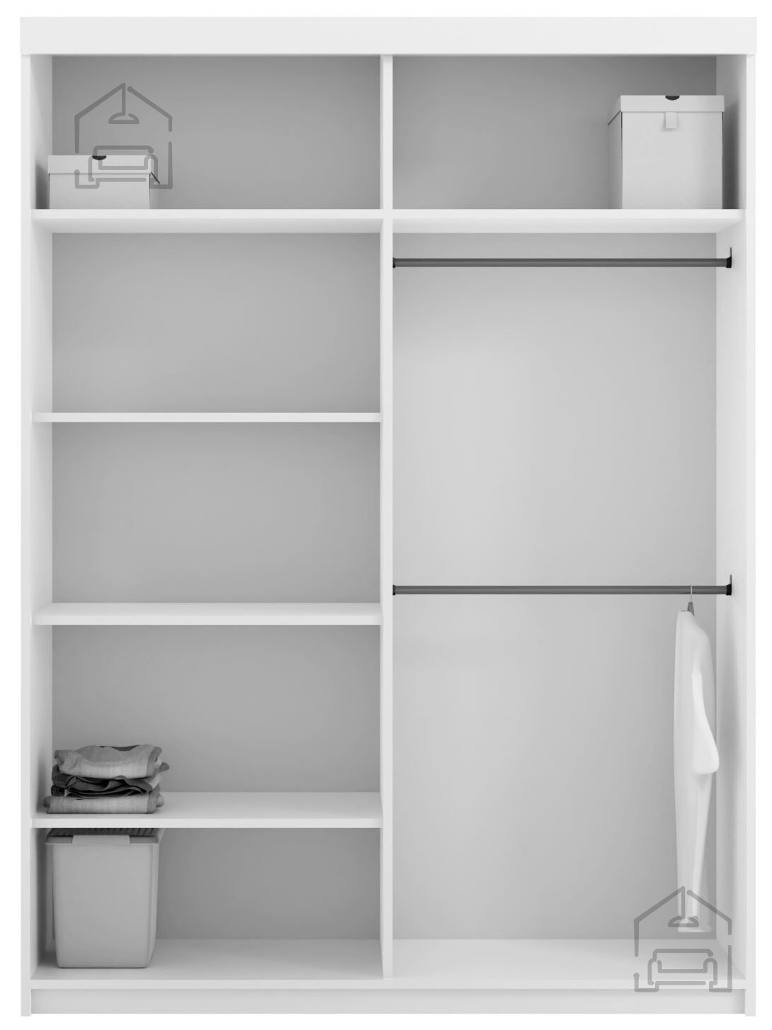 Der Kleiderschrank Batumi 150 ist ein modernes und praktisches Möbelstück, das Ihr Schlafzimmer oder Ihren Flur hervorragend ergänzt. Hier sind die wichtigsten Merkmale dieses Schranks: