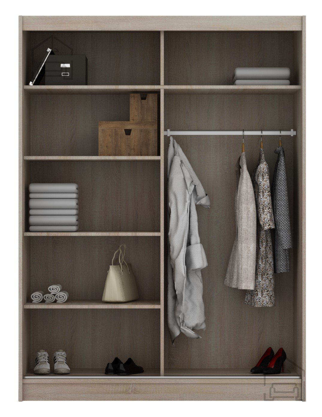 Geräumigkeit: Der Schrank ist mit Regalen und einer Kleiderstange ausgestattet, was eine organisierte Aufbewahrung Ihrer Kleidung und anderer Gegenstände ermöglicht. Das geräumige Innere des Schranks sorgt für Ordnung und Übersichtlichkeit Ihrer Kleidung.